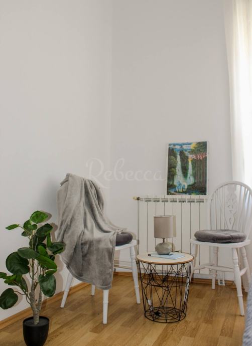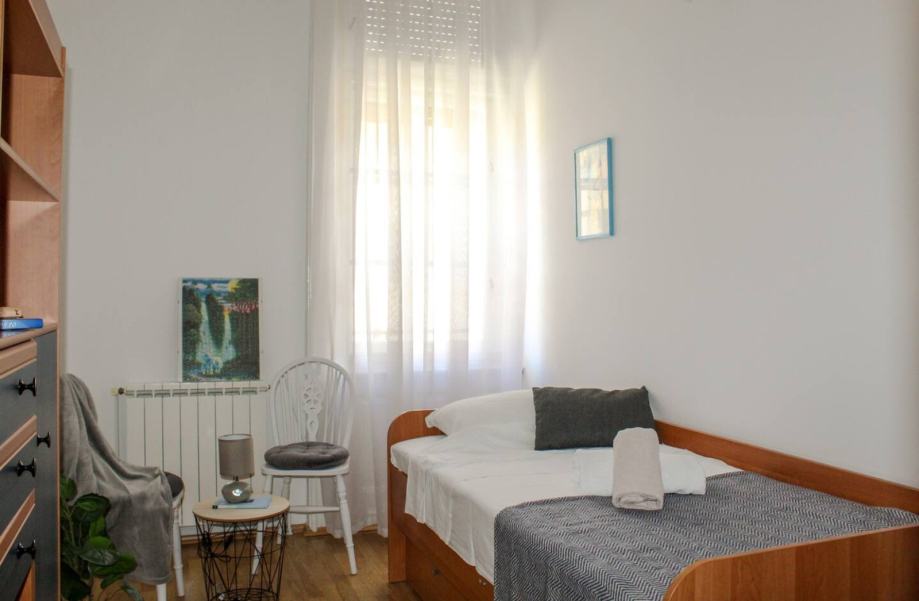 Stan je površine 88,47 m2 nalazi se u užem centru grada, cca. 300m udaljen od Arene, neposredna blizina željezničkog i autobusnog kolodvora, škole, i 150 m udaljen od rive, blizina veslačkog kluba i parkova. Sastoji se od tri spavaće sobe, dnevnog boravka, kuhinje, blagovaone, špajze, kupatila, hodnika i dva balkona (s jednog je pogled na more). Ima centralno grijanje na zemni plin i klimu. Sa južne strane postavljena je PVC stolarija sa 5 komora a ulazna vrata su protuprovalna.