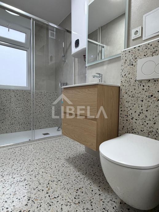 Prilikom adaptacije promijenjene su instalacije u cijelom stanu (struja i voda), postavljena nova protuprovalna vrata, PVC stolarija kao i sva nova sobna vrata, postavljen je višeslojni parket sa širokim bijelim lajsnama, potpuno nova kupaonica te je tako zamijenjen doslovno svaki zamjenjivi segment stana...