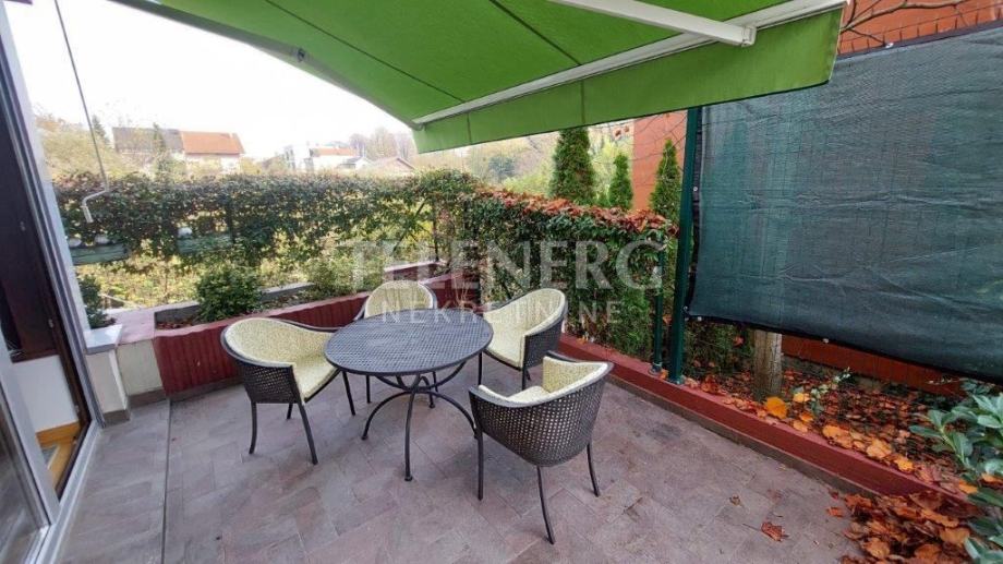 • Stan se nalazi u visokom prizemlju kvalitetno građene zgrade. Stan 85m2 + terasa 16m2 + vrt 17m2