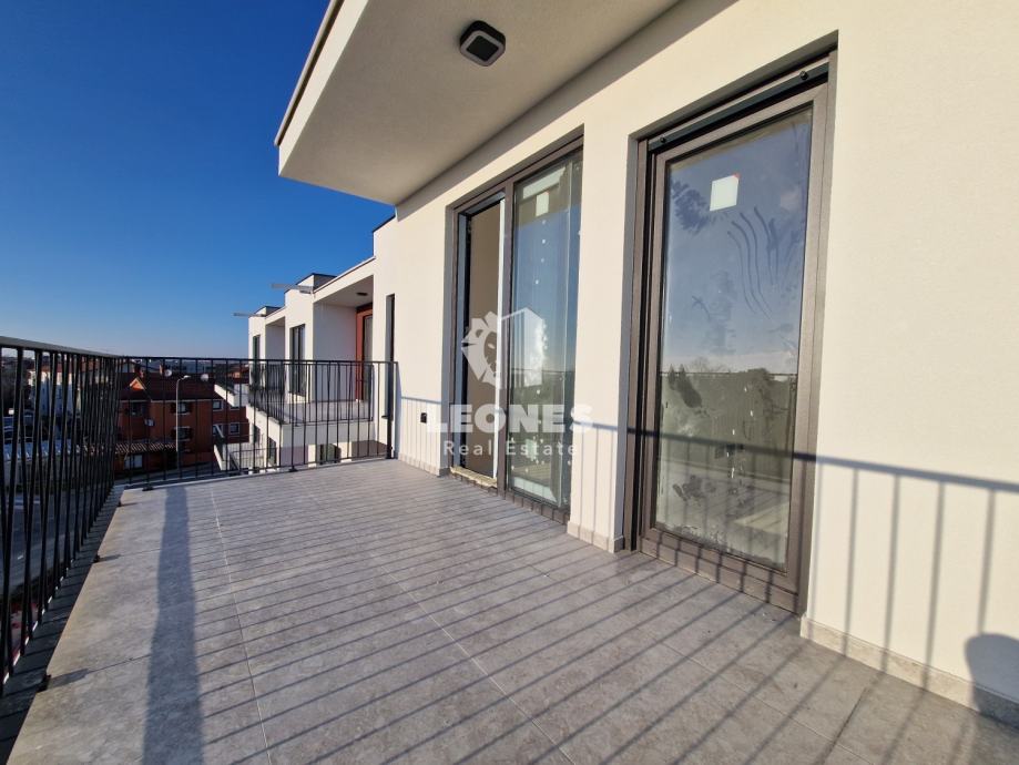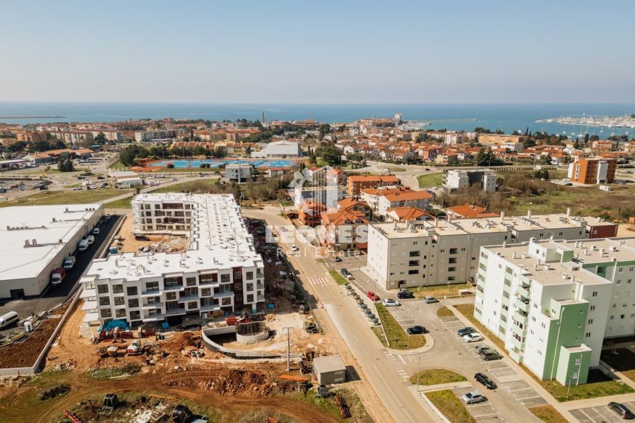 Prodaje se trosoban stan s dvije terase i garažnim parkirnim mjestom u Umagu. Neto korisna površina stana je 100,45 m2. Stan se nalazi na trećem katu stambene zgrade te se sastoji od dnevnog boravka i kuhinje, 3 spavaće sobe, 2 kupatila i 2 terase. Pripada mu spremište od 3,44 m2 te jedno garažno parkirno mjesto i 2 vanjska parkirna mjesta.