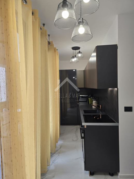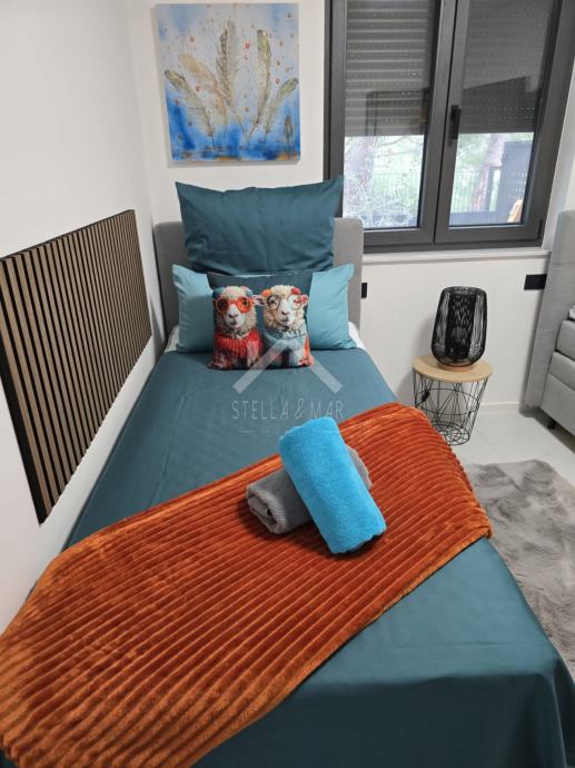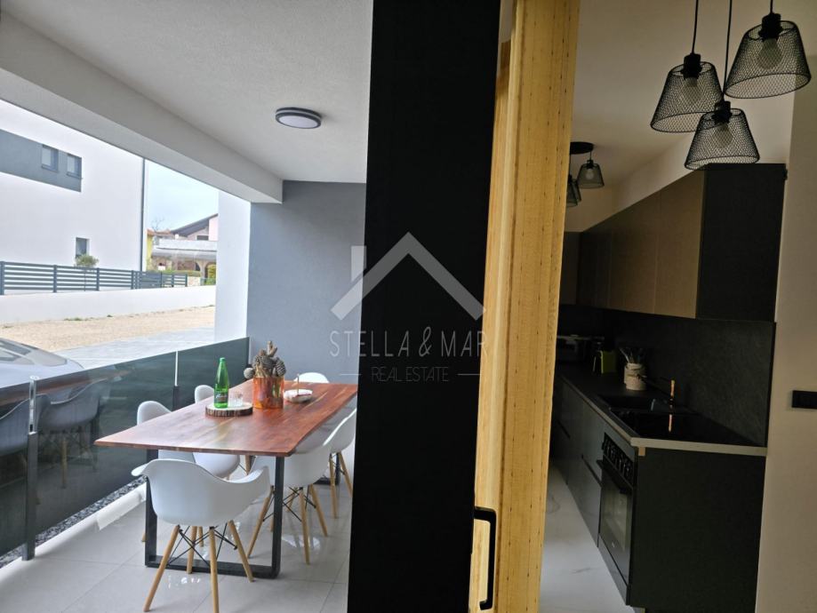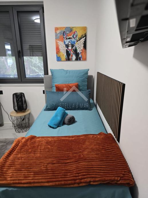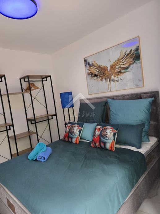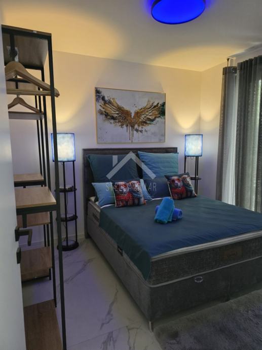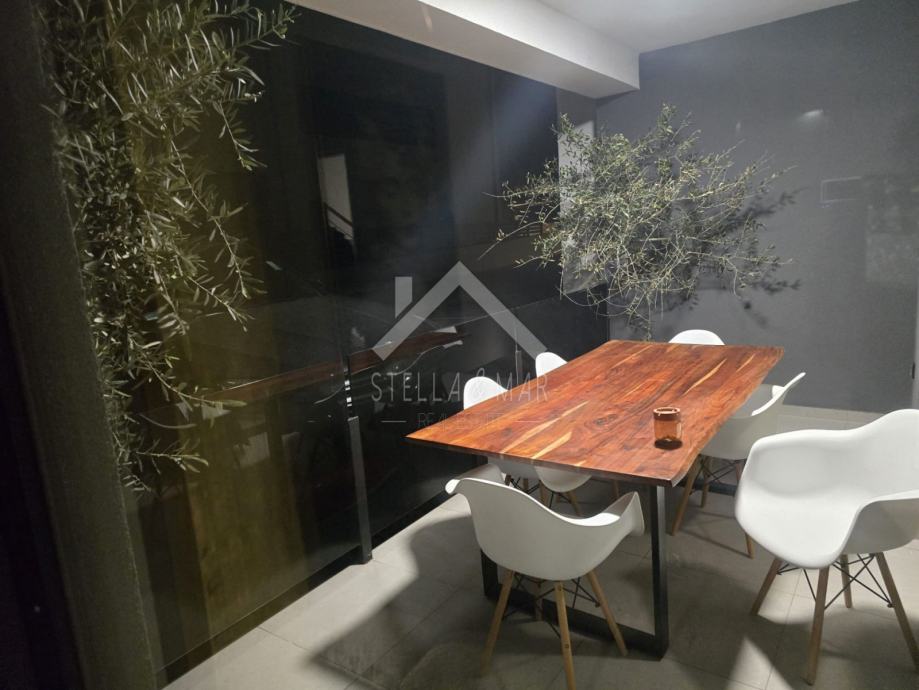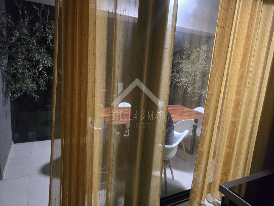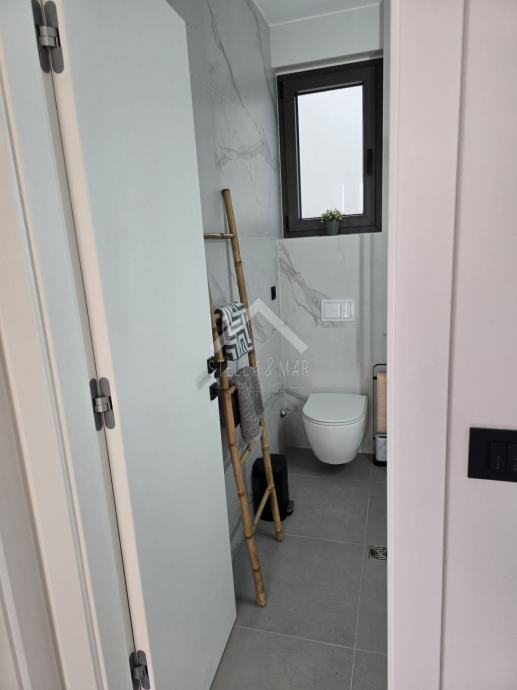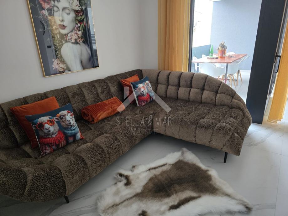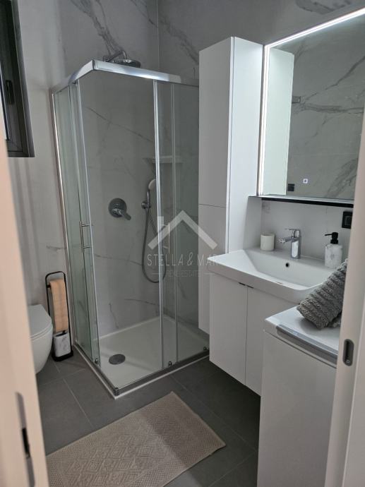 Stan se sastoji od kuhinje sa blagovaonicom, dnevnog boravka, prostrane natkrivene terase, kupaonice i dvije spavaće sobe. Električno podno grijanje i klima uređaji u stanu.