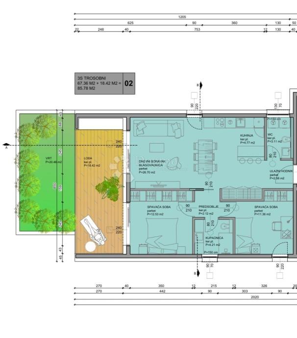 Posebna vrijednost ovog stana je lođa od 18,42 m² (obračunava se dodatno) te vlastiti vrt površine 20,46 m², savršen za dječju igru, boravak na otvorenom i obiteljska druženja u sigurnom i prirodnom okruženju.