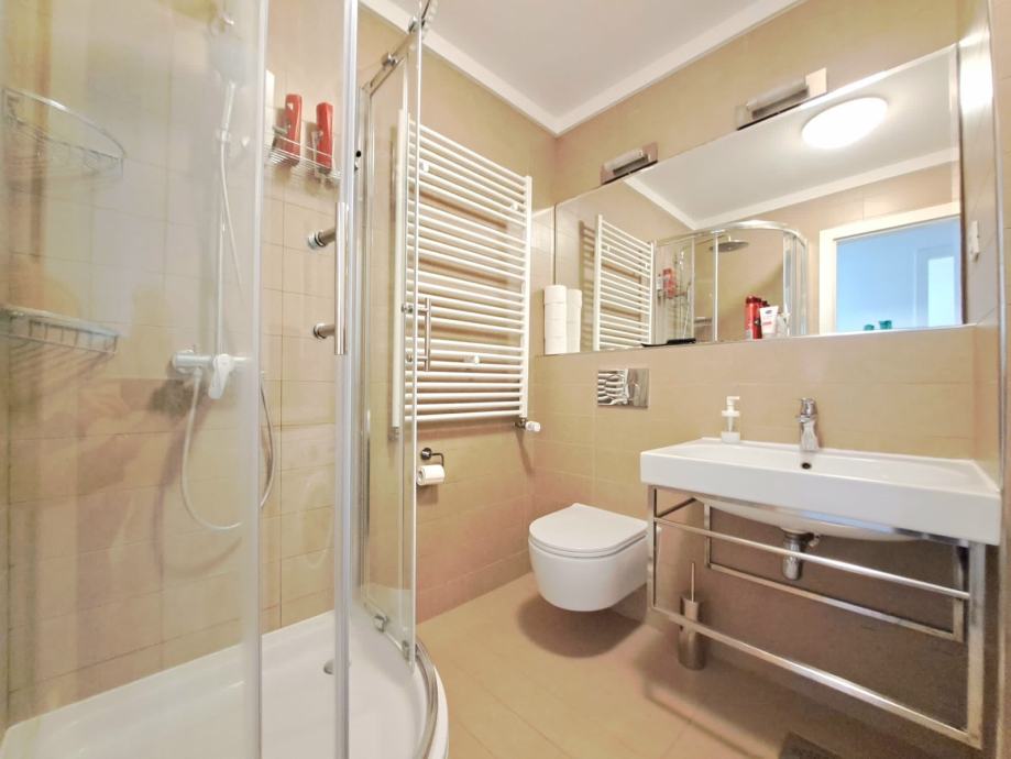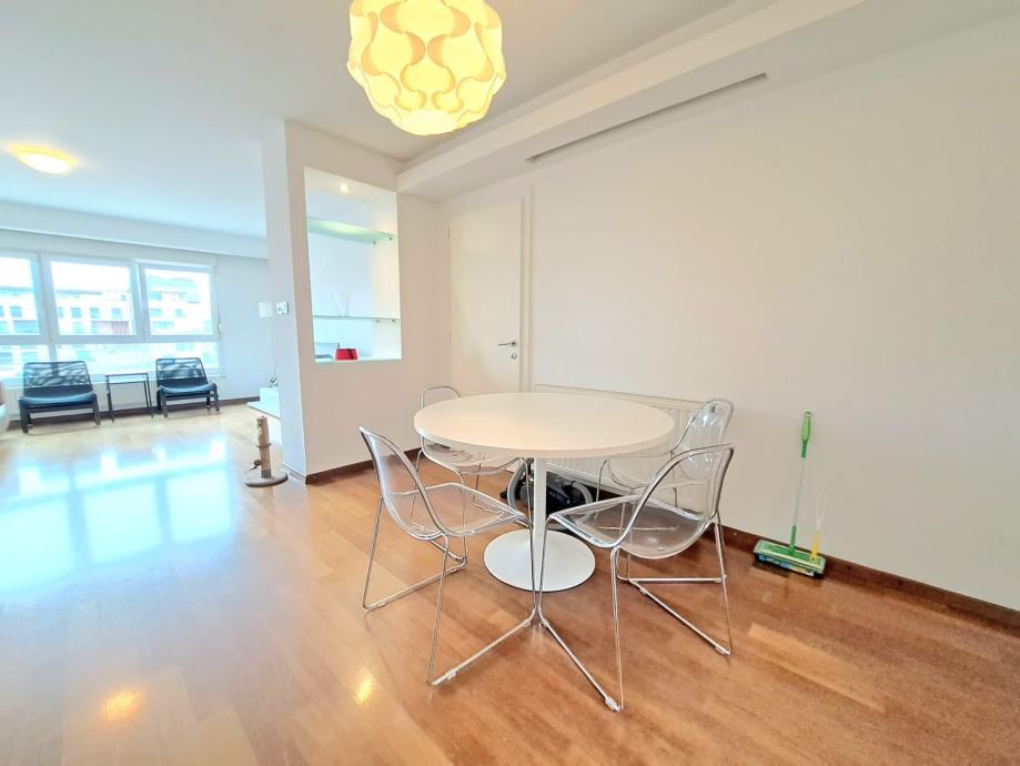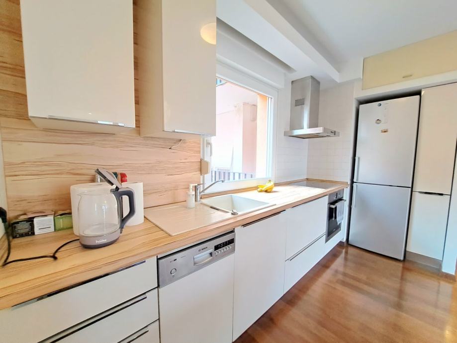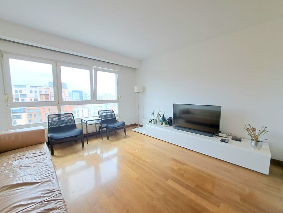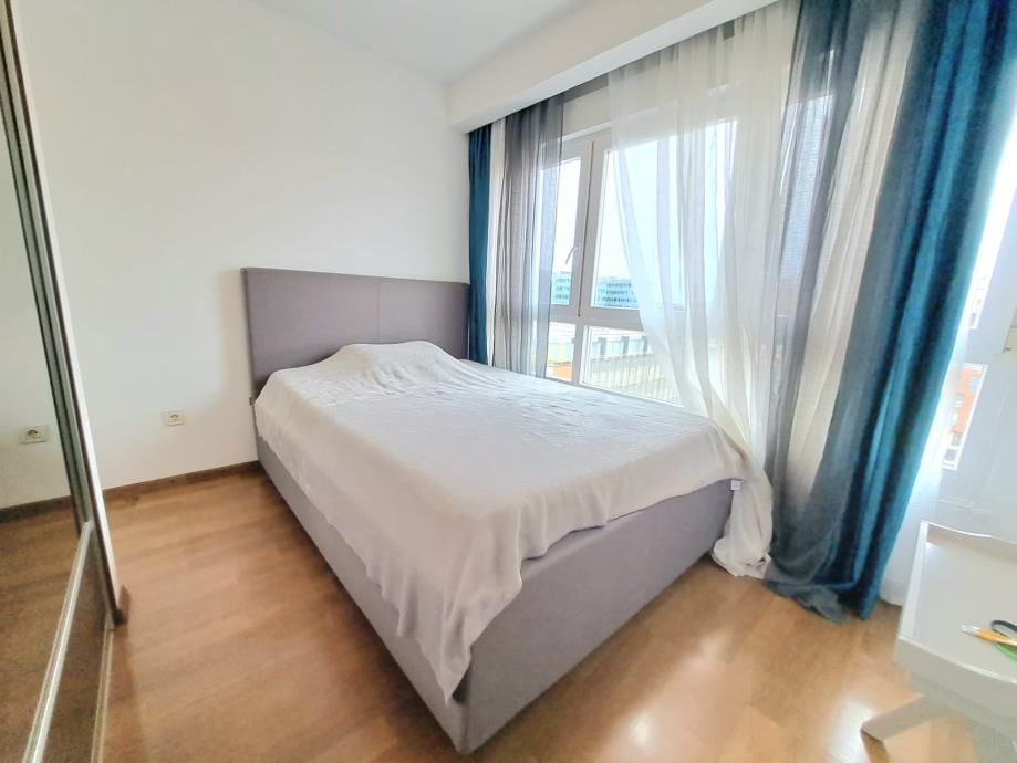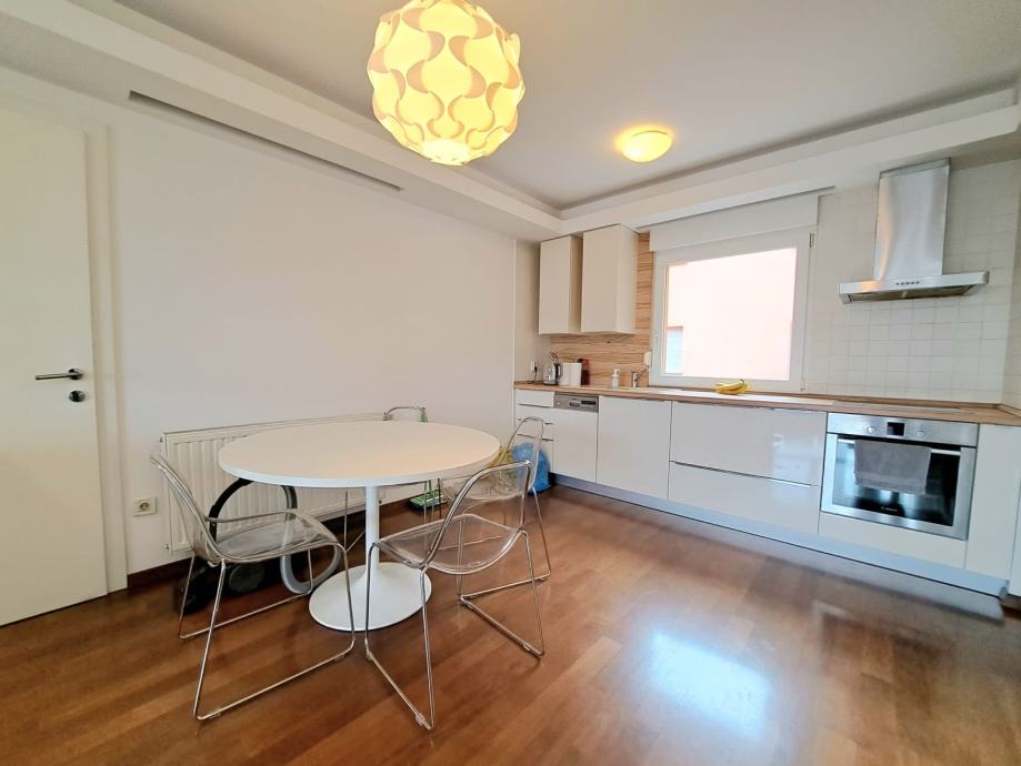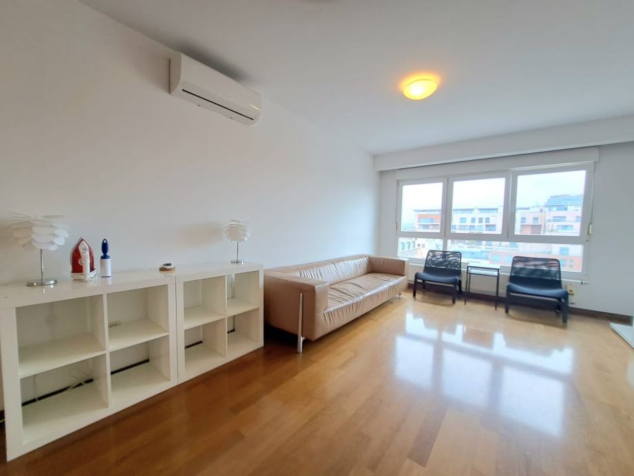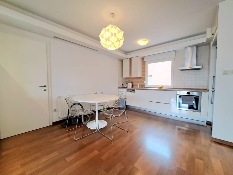 Svijetao trosoban stan smjestio se na sedmom katu nove zgrade na Radničkoj cesti, NKP 70 m2. Stan se sastoji od ulaznog hodnika, garderobe, tri spavaće sobe, dnevnog boravka s kuhinjom i blagovaonom, kupaonice s wc-om te toaleta. Stanu pripada i balkon. Kompletno je opremljen i pripada mu i vlastito garažno mjesto. Orijentiran je na zapad. Osiguran je kao i sve stvari u njemu, uključujući i stvari budućih najmoprimaca, pomoć u kući za hitne intervencije te eventualna odgovornost istih.