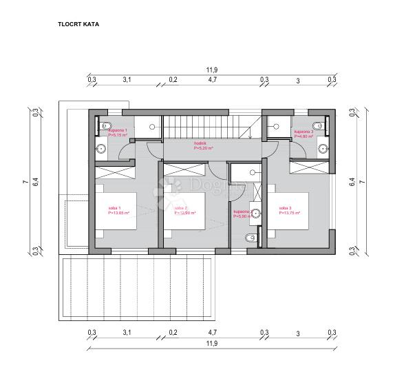 Kat: tri komforne spavaće sobe – svaka s vlastitom kupaonicom!