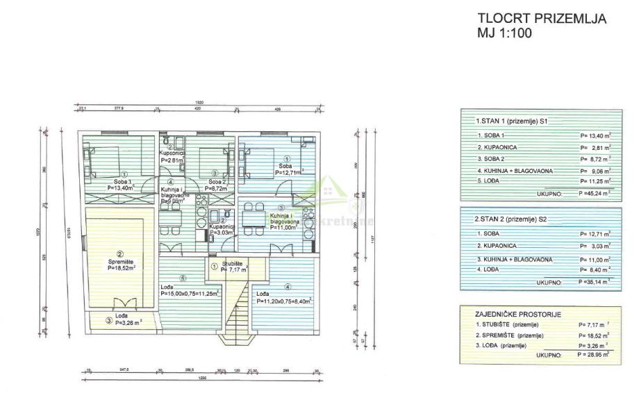 RASPORED:- predsoblje- kuhinja sa blagovaonicom te dnevnim boravkom- spavaća soba I- spavaća soba II- kupaonica sa WC-om- logia I- logia II