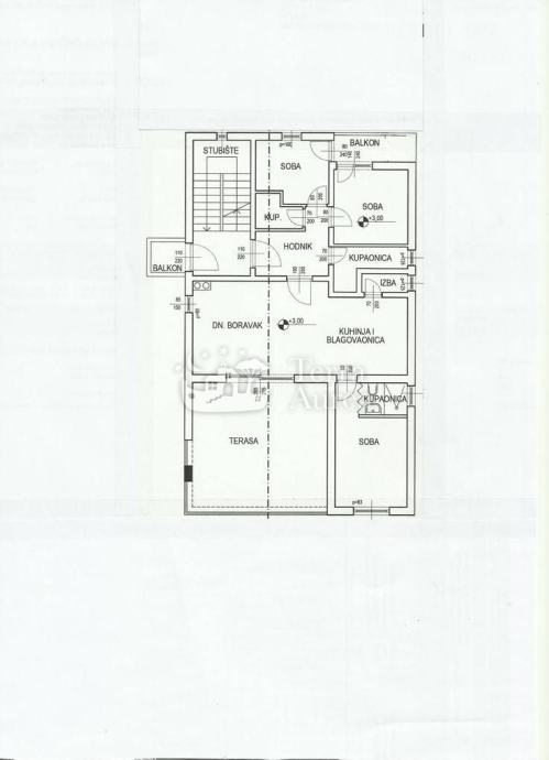 Obuhvaća stambenu površinu od 100 m2, a sastoji se od tri spavaće sobe svaka sa svojom kupaonom od kojih dvije imaju izlaz na balkončiće, hodnika, izbe, kuhinje i blagovaonice i dnevnog boravka iz kojeg se izlazi na terasu sa neponovljivim panoramskim pogledom na more.