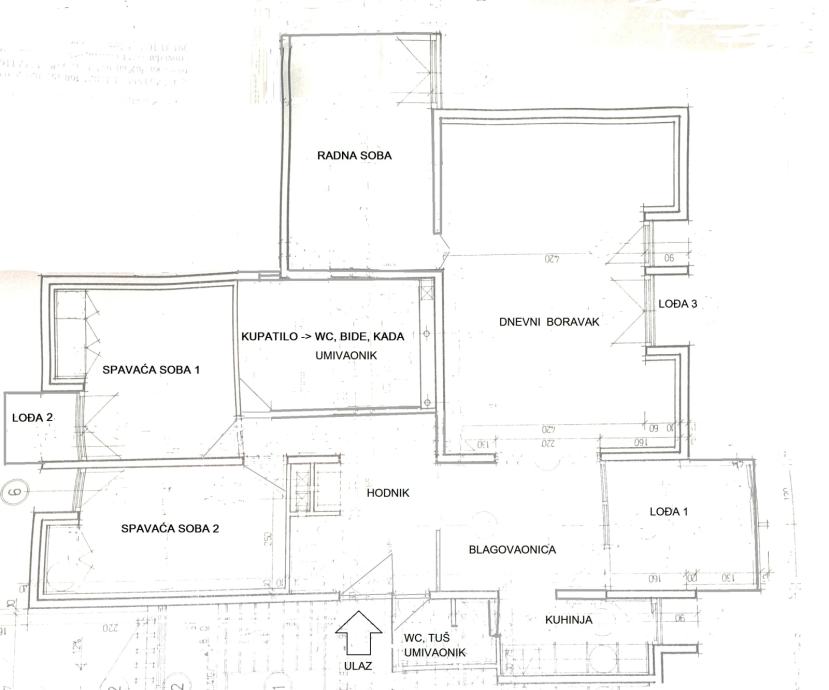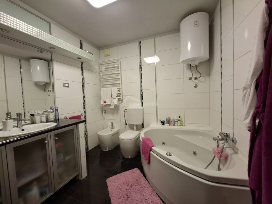 Dvije spavaće sobe, u potpunosti opremljene smještene su na sjeveru (jedna s izlazom na balkon), a jedna je na jugu, trenutno u funkciji radne sobe sa pomoćnim ležajem. Kroz sve prostorije provučen je internetski i TV kabel što omogućava dodatnu funkcionalnost ove izuzetno vrijedne nekretnine. U stanu su i dvije (2) potpuno opremljene kupaonice s ugrađenim podnim grijanjem. Cijeli prostor stana obložen keramikom uključujući kuhinju, blagovaonicu i hodnik ima ugrađeno podno grijanje. Klimatizacija je sprovedena u cijelom stanu sa više unutarnjih jedinica.
