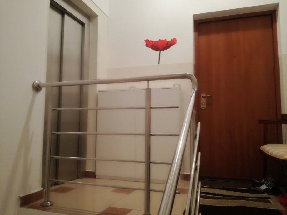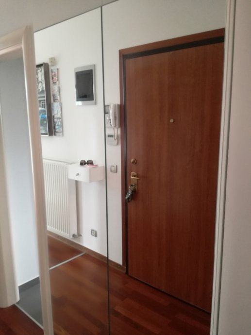 This great apartment is located in very peaceful street, not to far from the center, with a beautiful view of the woods. Its situated in newer building with elevator and holds open plan kitchen with dining and study corner, 2 double bedrooms, bathroom, guest toilet and 2 large terraces, one covered of 37 sq m and one of 12 sq m. One parking space is reserved, but also private gym is available for use in common.