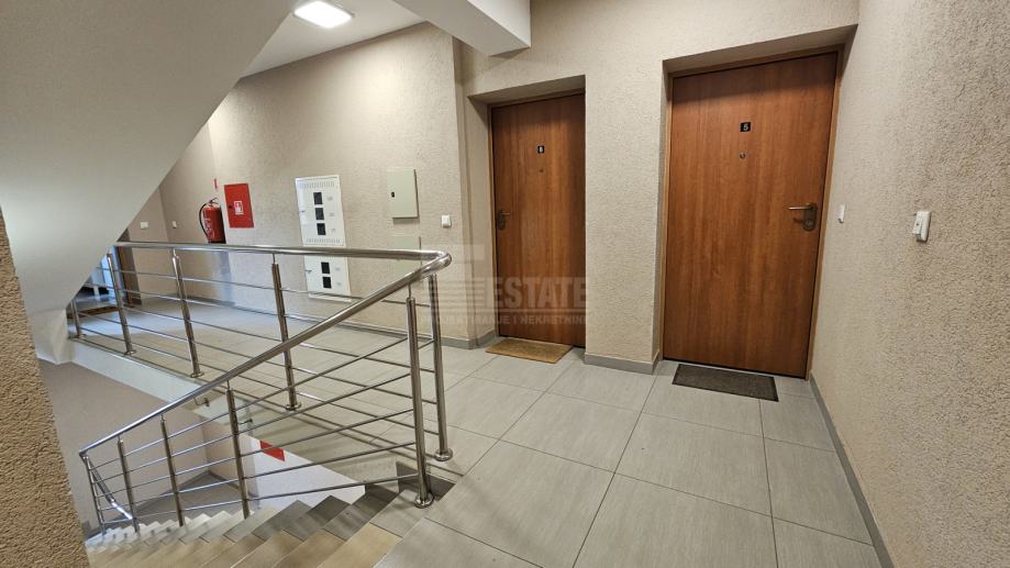Zgrada je građena 2014. godine, iznimno dobro održavana, s urednim stubištem, ugrađenim video nadzorom, većim spremištem za bicikle/kolica i sl, te spremištem za kante za smeće. Parkiralište je odvojeno rampom na daljinski. U urednom zatravljenom dijelu dvorišta moguće druženje stanara, igranje djece i sl.