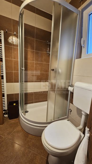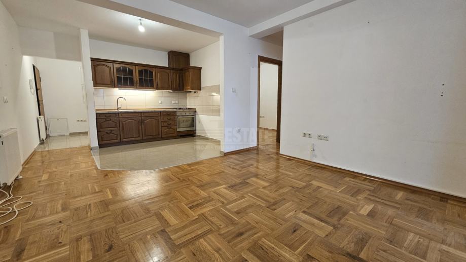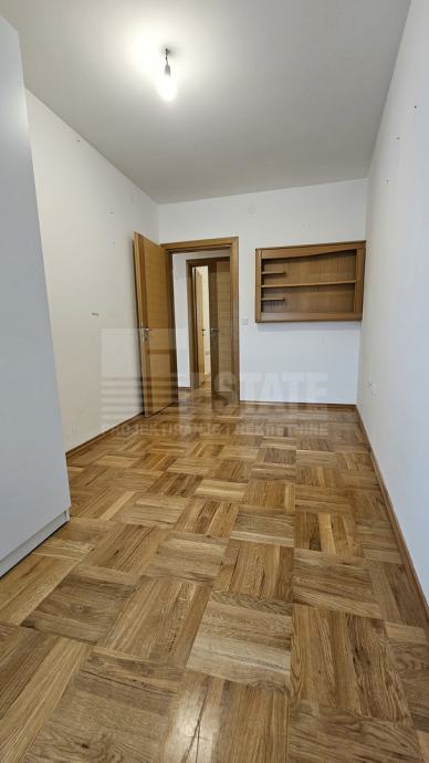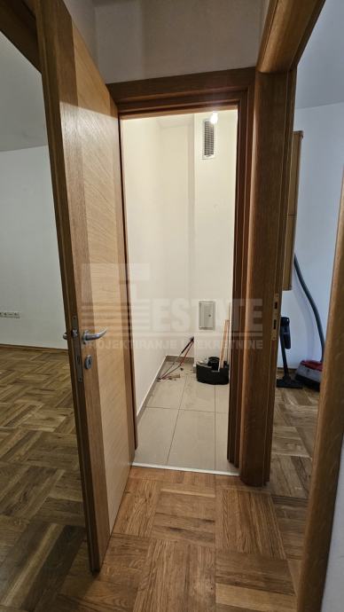 Stan (i cjelokupna zgrada) su građeni izvrsnim materijalima, s kvalitetnim protuprovalnim ulaznim vratima, vrhunskom PVC vanjskom stolarijom, parketom od punog drveta itd. Zagrijavan plinskim centralnim radijatorskim grijanjem na kombi bojler marke Vailant, ugrađen jedan klima uređaj u dnevnoj sobi. Stan je ispražnjen od svog namještaja izuzev kuhinje s frontama od punog drveta te ugradbenim aparatima u solidnom stanju.