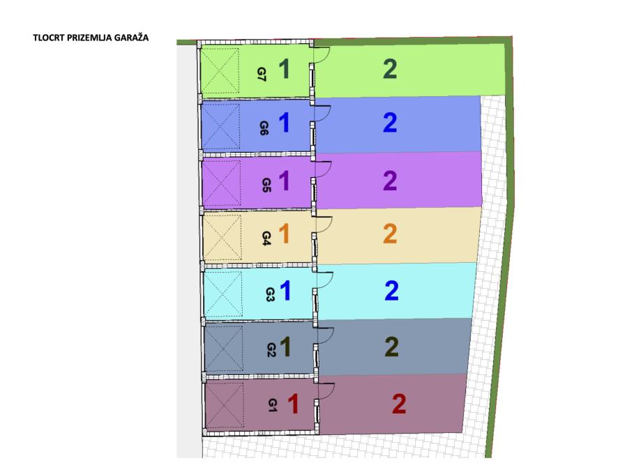 Uz stanove u ponudi su i garaže, te pripadajući dijelovi vrta (zelene površine) iza garaže.