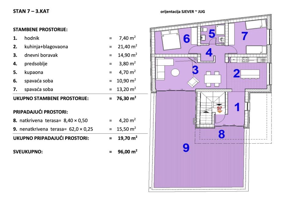 Stan 7 - 3. KAT (orijentacija SJEVER-JUG)