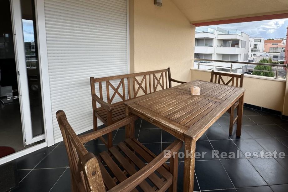 Prostrani trosobni stan, smješten na trećoj etaži stambene zgrade. Ukupna stambena površina iznosi 93 m², a sastoji se od tri sobe, dviju potpuno opremljenih kupaonica, prostrane blagovaonice povezane s modernom kuhinjom te prostranog dnevnog boravka s izlazom na terasu.