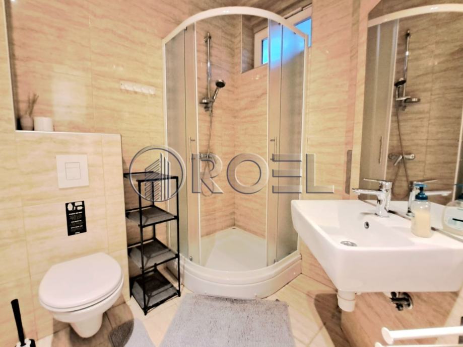 Prostran trosobni stan smješten na četvrtom katu kvalitetne zgrade s liftom u ulici Pod Zidom, NKP 90 m2. Odličnog je rasporeda. Sastoji se od predprostora, dnevnog boravka s balkonom kojeg krasi prekrasan pogled na grad, velike kuhinje i blagovaone, dvije spavaće sobe i dvije kupaonice s wc-om.Pun je prirodnog svjetla. Grijanje u stanu je etažno plinsko centralno. Pod u stanu je obložen parketom i keramikom. Ulazna vrata stana su protuprovalna sa šifrom. Stan je kompletno namješten i opremljen.