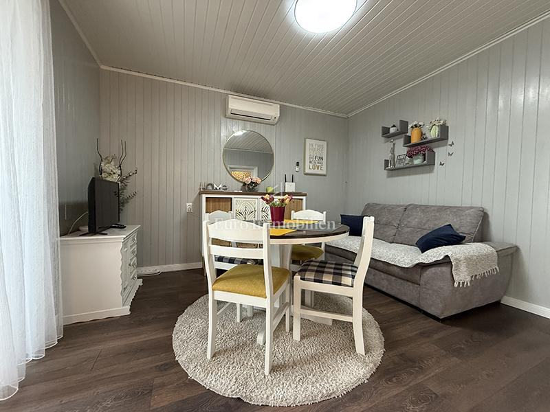 Stan je renoviran u dva navrata, 2010. i 2021. godine. Na krovu zgrade postavljena je Draco izolacija, a na stropu stana toplinska izolacija od 10 cm stiropora. Klimatiziran je s dva klima-uređaja, potpuno namješten i kao takav se prodaje.