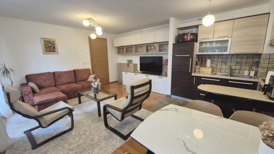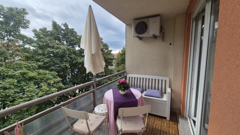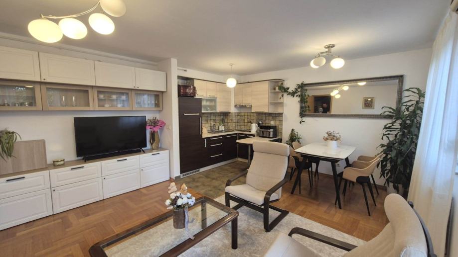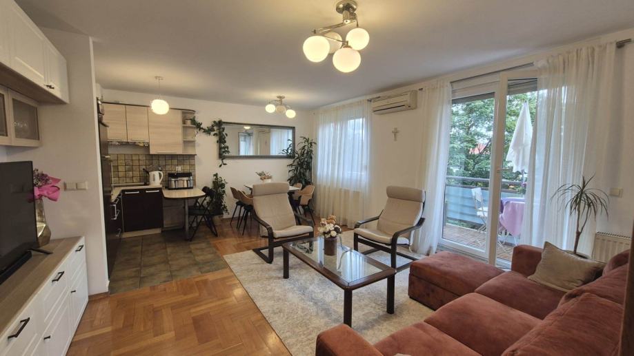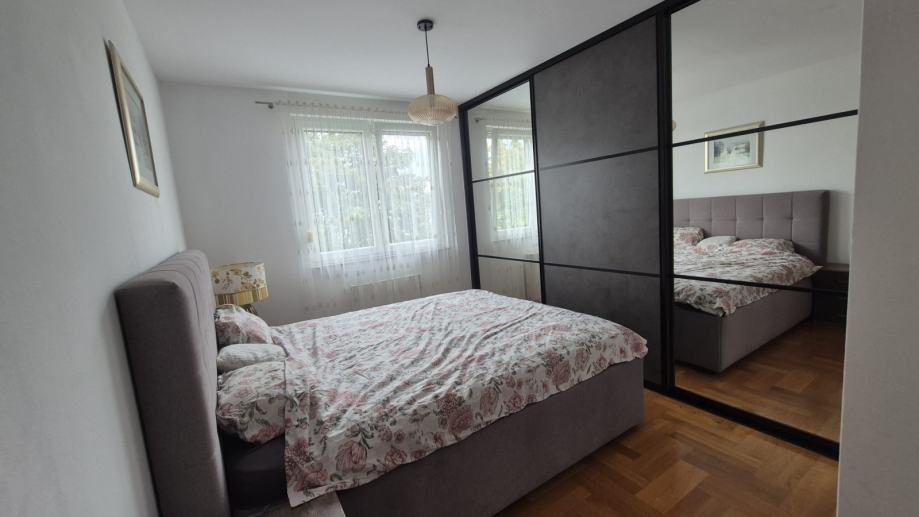 Potpuno opremljen stan od 60,65 m2 smješten na 2. katu zgrade s liftom. Sastoji se od hodnika, dvije spavaće sobe, kuhinje s dnevnim boravkom i balkonom, kupaonice. Stan ima klima uređaj, PVC prozore, plinsko grijanje, odvojena brojila za vodu, plin i struju. Stan je vrlo svijetao, orijentiran na jug. Dostupna garaža za 150 Eur. Nekretnina se nalazi u blizini Jarunske tržnice. Agencijska provizija 1 najamnina.