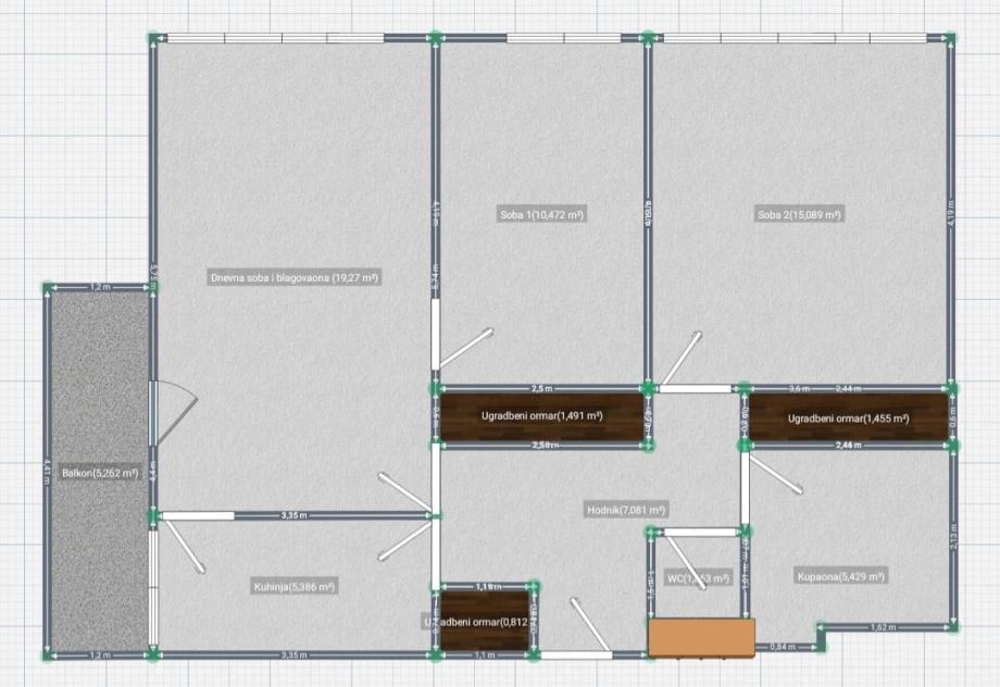 Prodajem trosobni stan u Koprivnici, ukupne površine 72,85 m², visoko prizemlje.