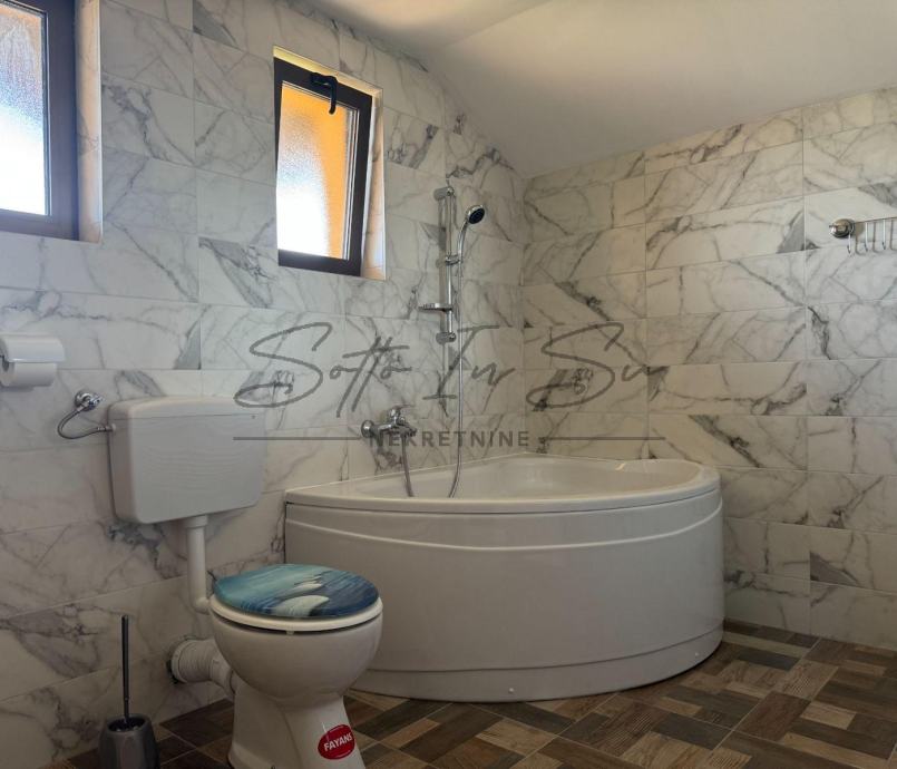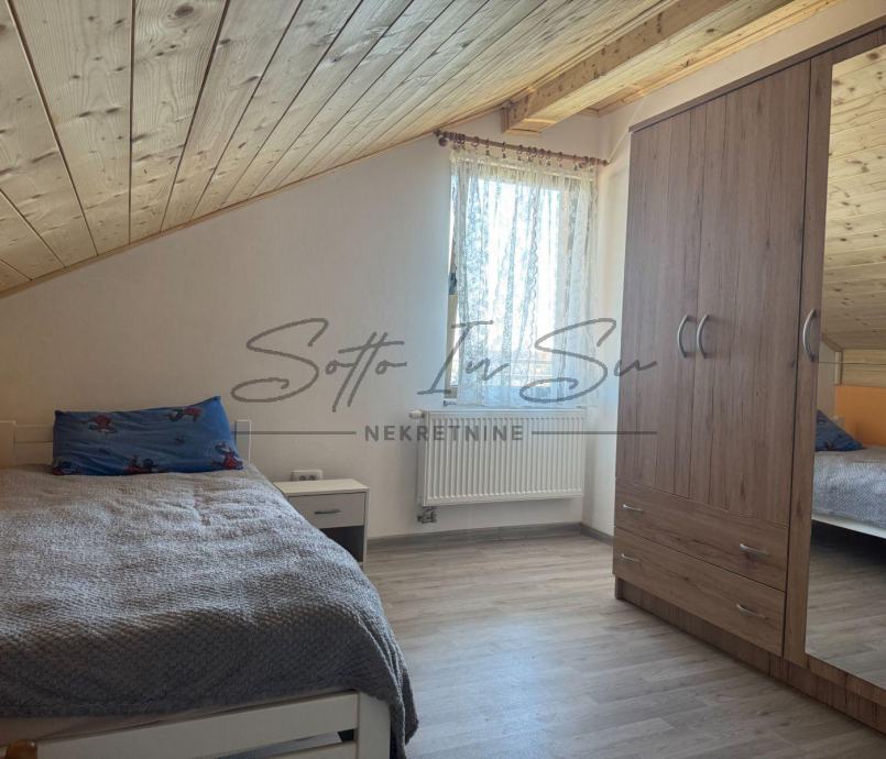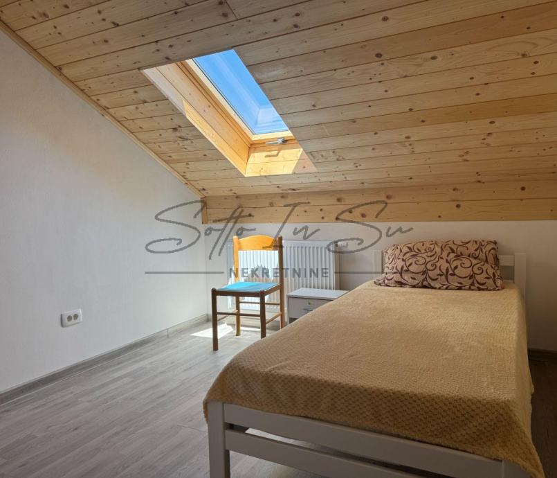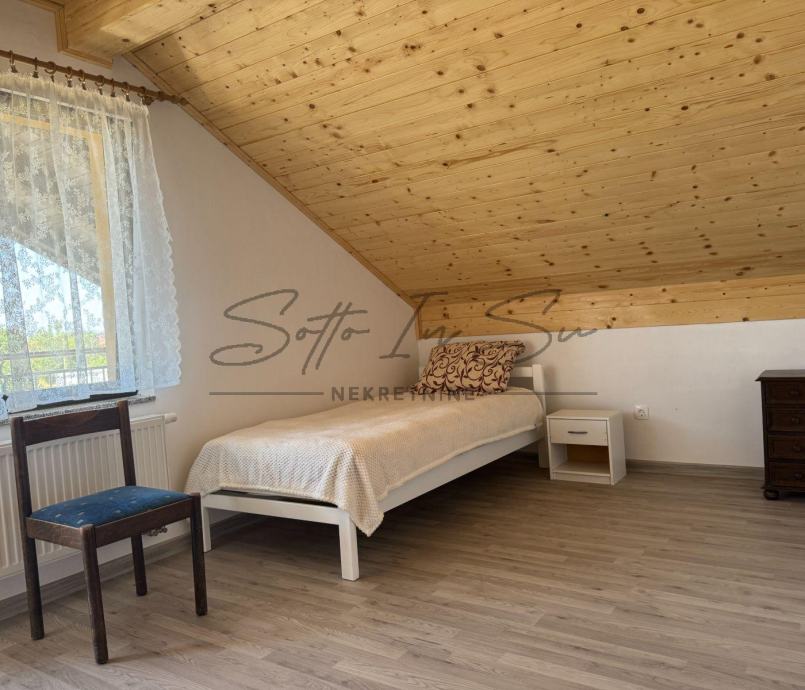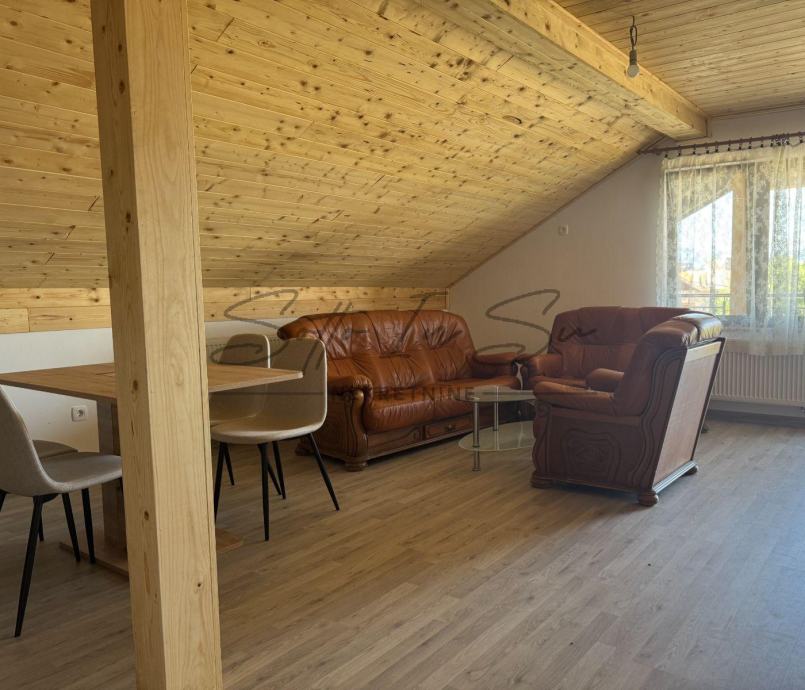 Iznajmljuje se stan u visokom potkrovlju obiteljske kuće u Sesvetama površine 95m2 koji se sastoji od tri spavaće sobe, dnevnog boravka sa kuhinjom i blagavaonom, te kupaonom dok se cijelom dužinom stana proteže terasa od 10m2. Stan je adaptiran u 2025g. i ovo mu je prvi najam. Nekretnina se iznajmljuje namještena i opremljena a ovisno o najmoprimčevim potrebama vlasnik je spreman na manje preinake. Stan ima i pripadajuća parkirna mjesta unutar dvorišta nekretnine. Nekretnina je pogodna za obitelj ili više studenata. U neposrednoj blizini nekretnine nalaze se svi sadržaji potrebni za normalnu organizaciju života kao što su škola, crkva, dom zdravlja, trgovine, veliki shopping centri dok je autobusna povezanost sa centom grada česta i brza, stanica je na udaljenosti 3min. pješice dok je izlazak na Slavonsku aveniju autom 1min.Obavezno je potpisivanje Ugovora o najmu koji se solemnizira na minimum godinu dana. Pri potpisu Ugovora najmoprimac plaća depozit u visini cijene najma. Cijena najma je podložna minimalnoj korekciji ovisno o broju osoba koji ulaze u najam. Za sve ostale informacije ili razgledavanje budite slobodni kontaktirati na: Email: info@sottoinsu.hr ili na telefon 00385995362019