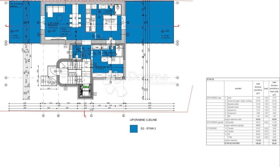-Parkiranje: 2 osigurana parkirna mjesta po stanu