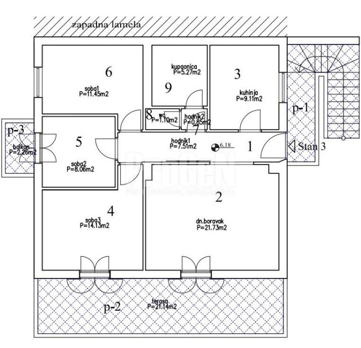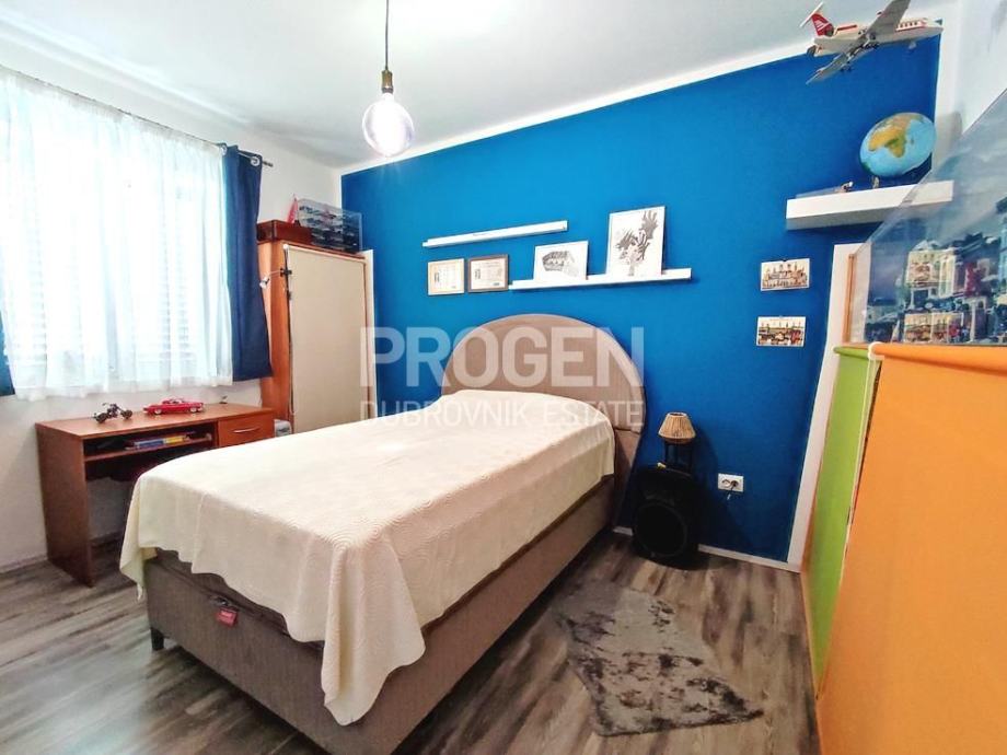 Prodaje se lijep trosobni stan na dobrom položaju u blizini plaže, svega 15-ak minuta pjesice od stare jezgre Grada Dubrovnika. Stan se sastoji od dnevnog boravka, kuhinje, tri spavaće sobe, kupaonice i hodnika. Iz dnevnog boravka i spavaće sobe izlazi se na prostrani balkon površine 21 m2. Vlastiti mali balkon ima i još jedna spavaća soba. Dodatna vrijednost ovog stana jest i potkrovlje u koje se može pristupiti isključivo iz ovog stana, a koje je dijelom uređeno sa provedenim instalacijama. Stanu pripada jedno parkirno mjesto. Nekretnina ima urednu vlasničku dokumentaciju. Stan je u odličnom stanju i odmah useljiv.