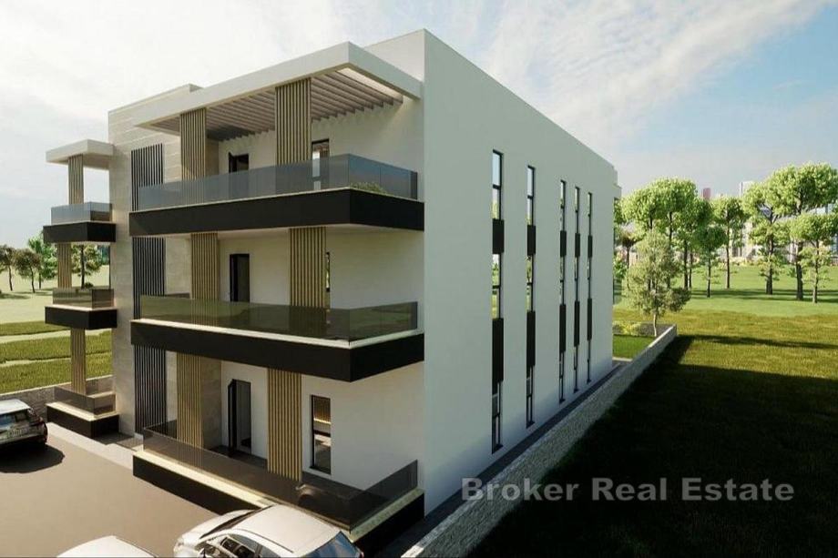 Na iznimno atraktivnoj lokaciji, u prvom redu do mora nedaleko od Zadra, smještena je manja, moderna, novosagrađena zgrada sa ukupno šest stanova.