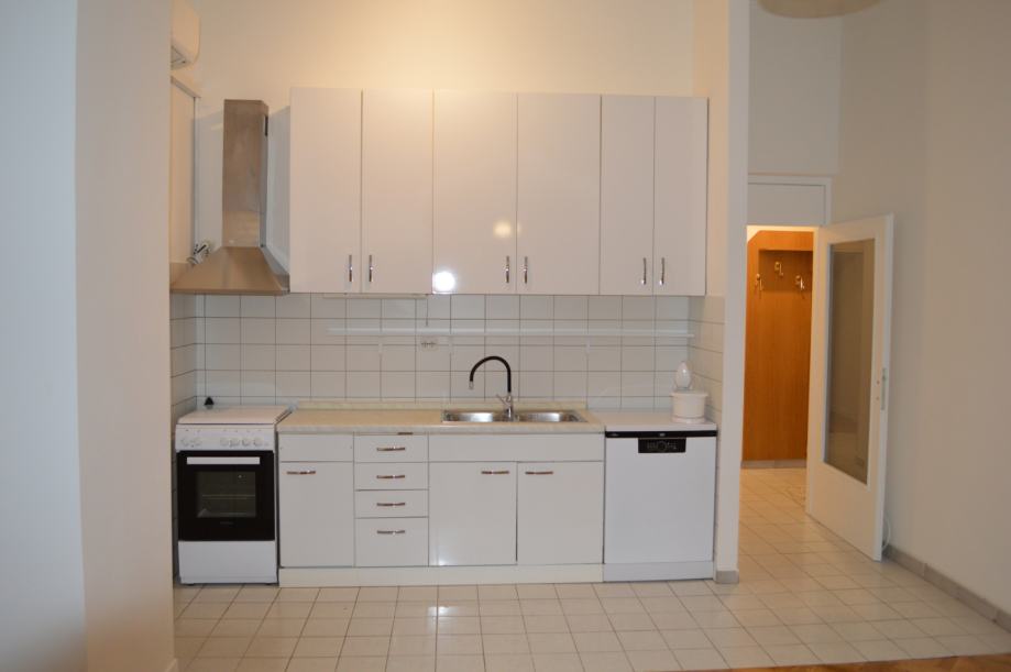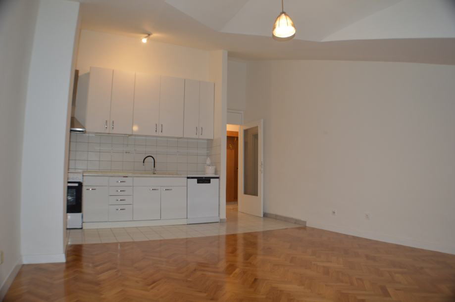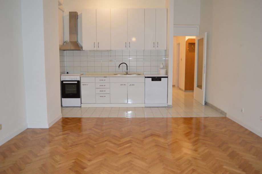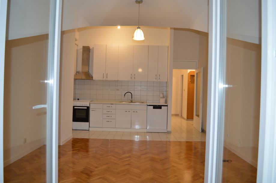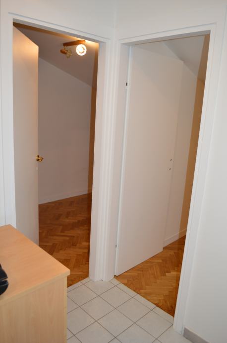 The apartment is 60m2 in size and has a very good layout. It consists of a living room, hallway, bathroom, balcony, two smaller rooms and one larger room.