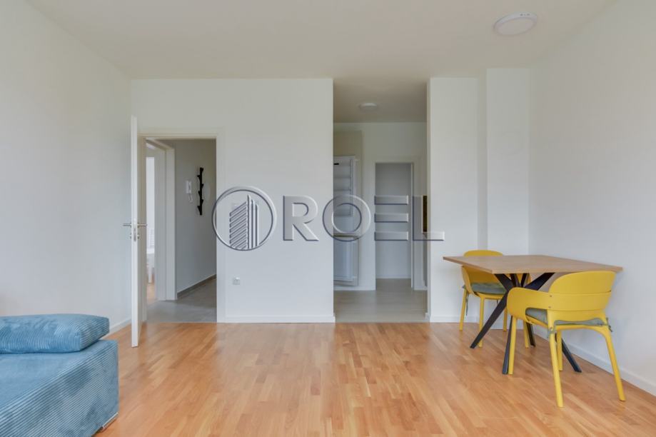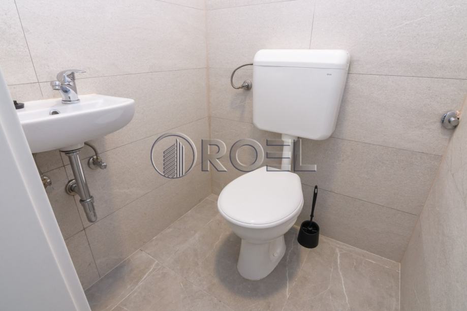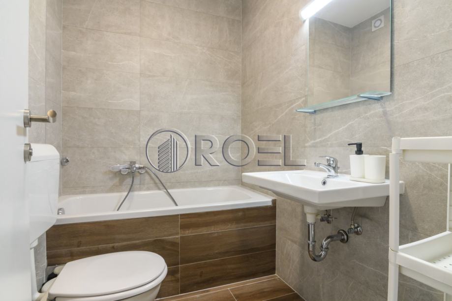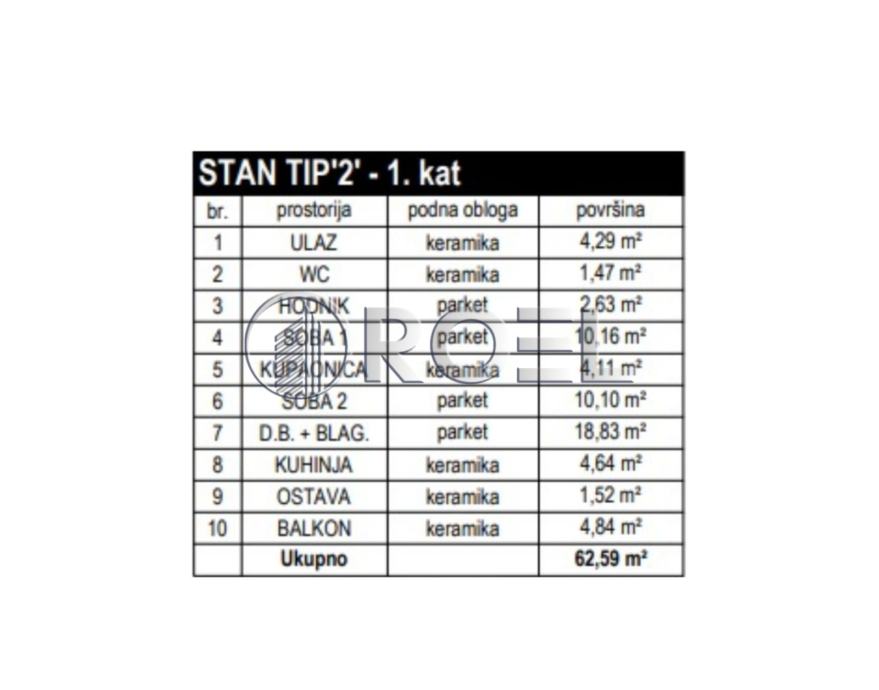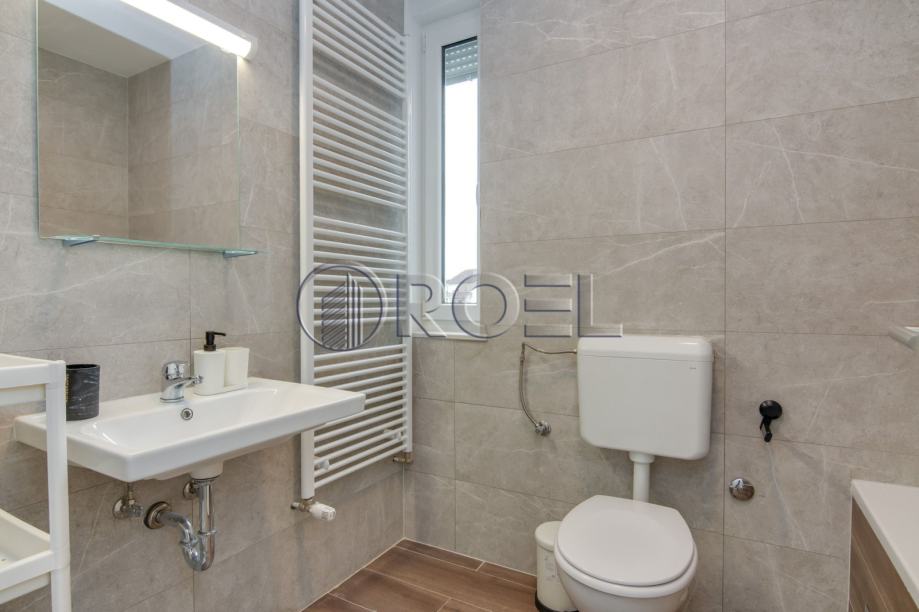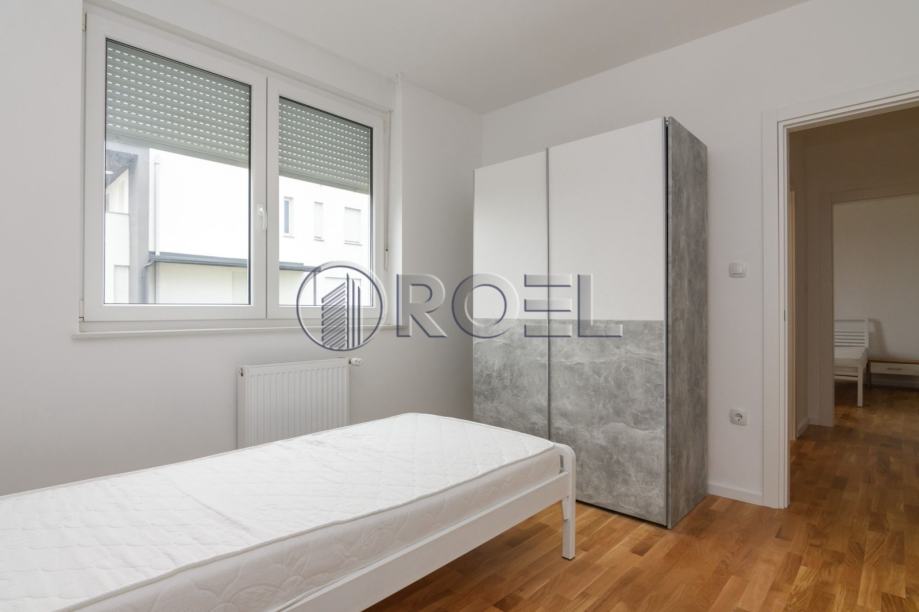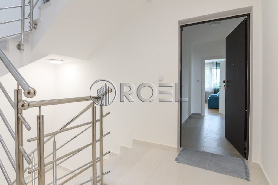 Trosobni stan nalazi se na prvom katu novogradnje u blizini Velike Gorice.NKP 74M2 Savršenog je rasporeda. Sastoji se od ulaza (4,29 m2), toaleta (1,47 m2), hodnika (2,63 m2), dvije spavaće sobe (10,16 m2) i (10,10 m2)od kojih manja ima izlaz na balkon (4.84 m2), kupaonice s wc-om (4,11 m2), dnevni boravak s blagovaonicom (18,83 m2). ), kuhinje (4,64 m2) i ostave (1,52 m2). Pod u stanu je obložen parketom i keramikom. Kompletno je opremljen i takav se i prodaje. Grijanje u stanu je etažno plinsko centralno. Opremljen je PVC stolarijom i klima uređajem. Kuhinja u stanu je Meblo Trade. Stanu pripada garaža veličine 15.15 (11.36 m2) i VPM veličine 12.50 m2.