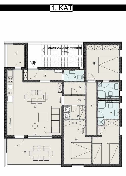-dnevni prostor (kuhinja, blagovaona i dnevni boravak) 30 m2