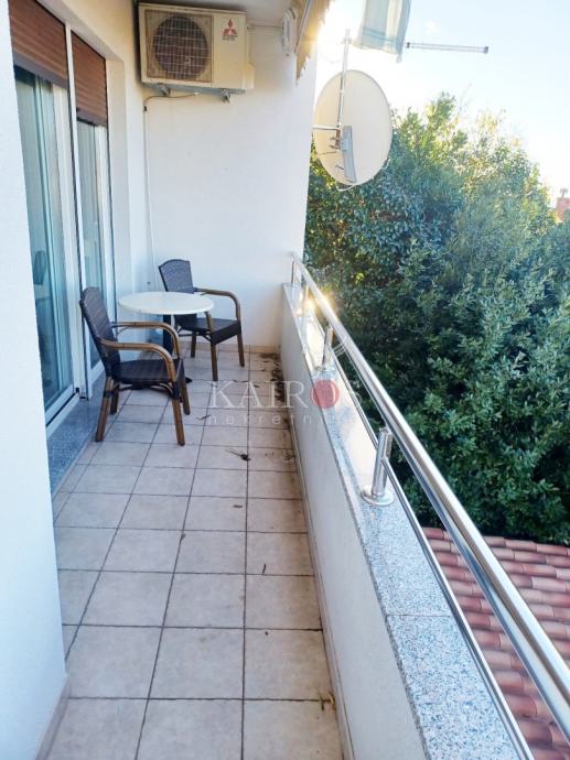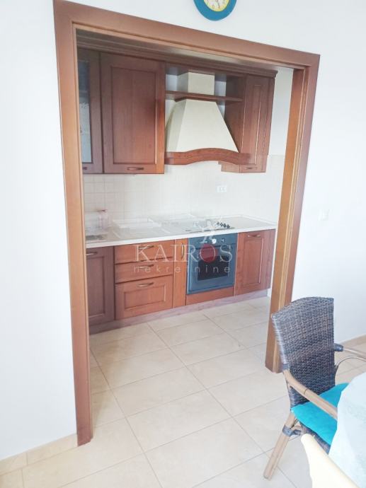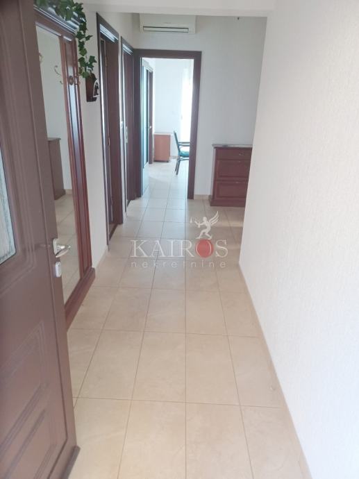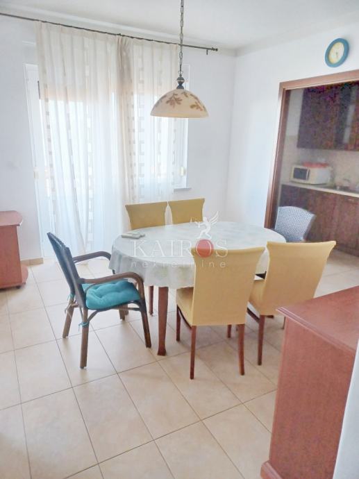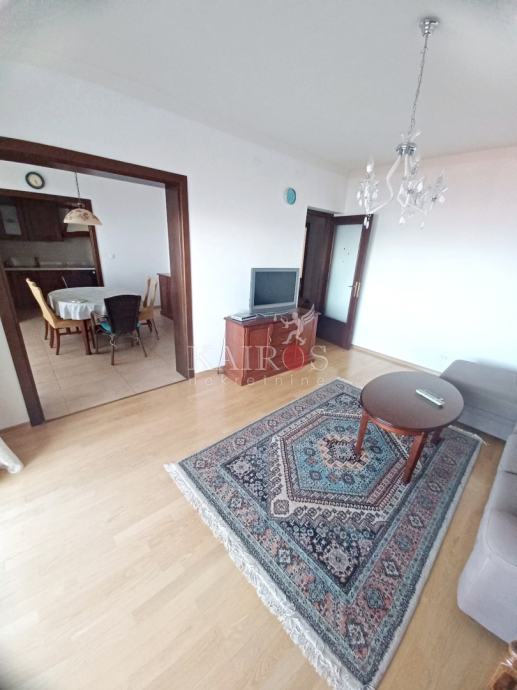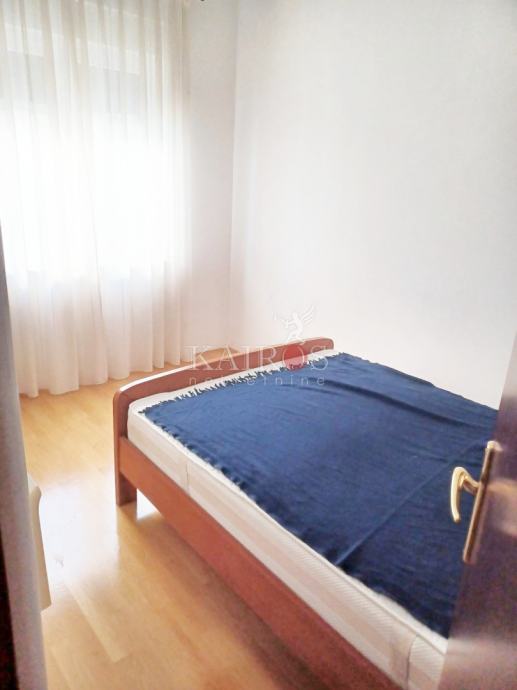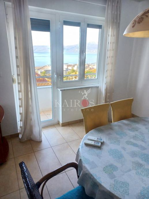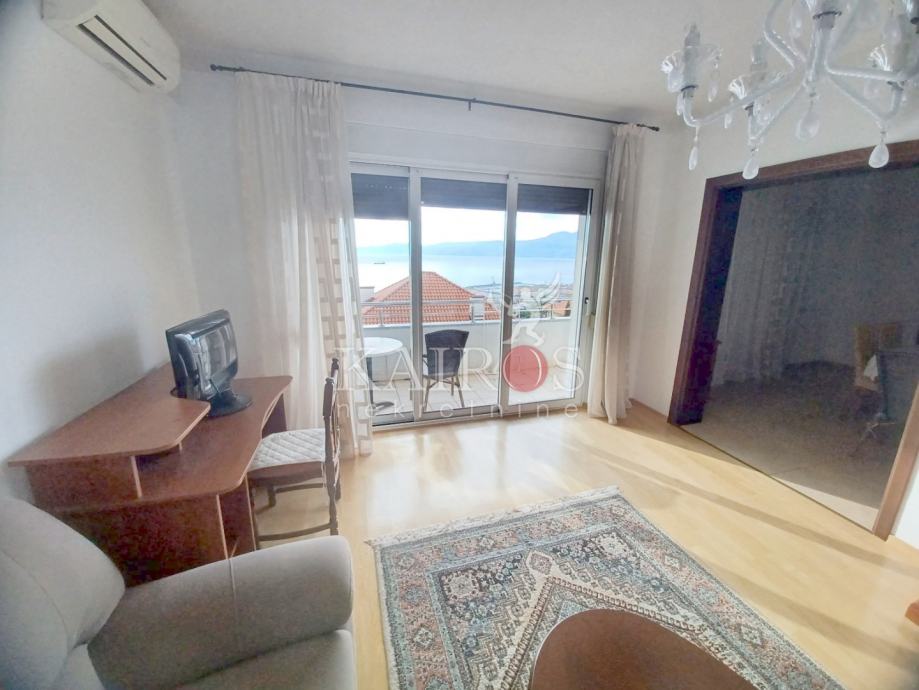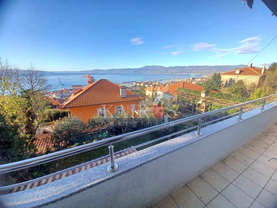 TRSAT, stan za najam površine 85 m2, na 1. katu dvokatne zgrade koja se nalazi na jednoj od najljepših lokacija u gradu. Stan je trosoban klasičan s velikim balkonom na jugu s prekrasnim panoramskim pogledom na more i grad. Stan je kompletno namješten i opremljen potrebnim kućanskim aparatima.