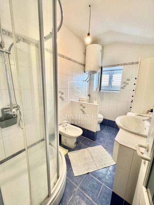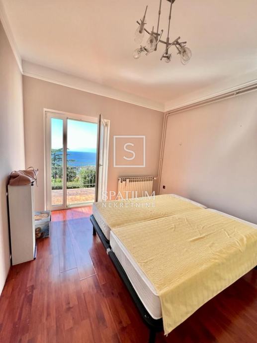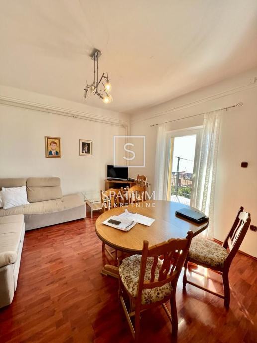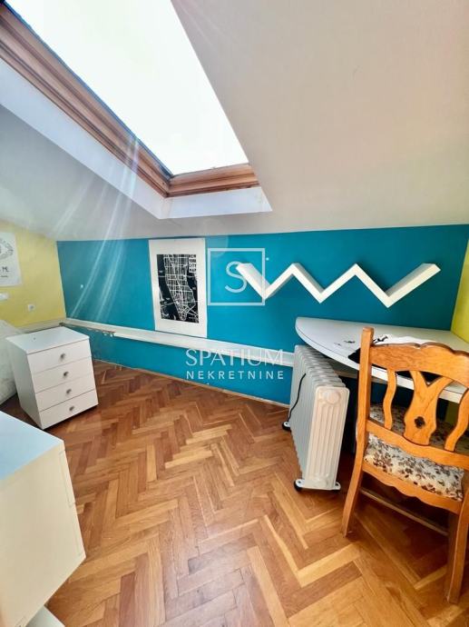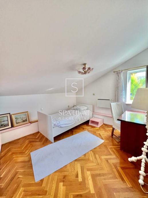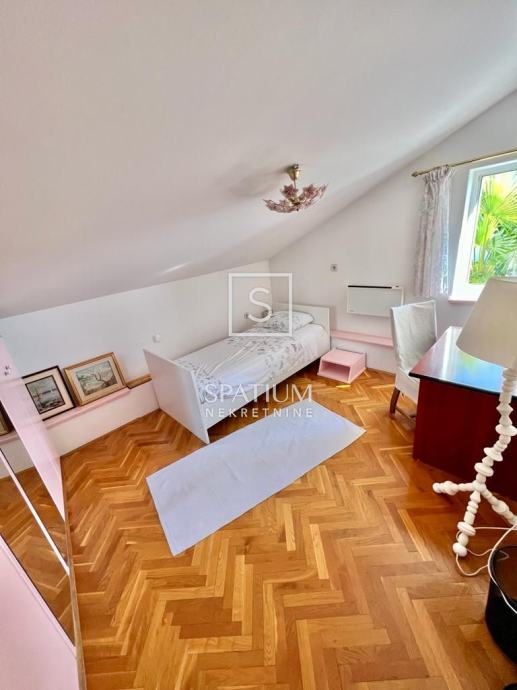 TRSAT, u ponudu smo dobili dvoetažni stan od 121 m2 sa gospodarskom zgradom uređenom kao garsonijera površine 31,10 m2 i pripadajućom okućnicom površine 140 m2. Ovaj dvoetažni stan se nalazi na prvom katu i potkrovlju, na jedinstvenoj lokaciji između dvije ulice što mu omogućuje potpuno mirno i izolirano okruženje. Stan se na prvom katu sastoji od dnevnog boravka, sobe, kuhinje s blagovaonicom, kupaonice s WC-om, hodnika sa stubištem površine 60.5 m2, sa pripadajućom terasom i dva stubišta sa sjeveroistočne strane, te prostranog balkona površine 11.20 m2 sa kojeg se pruža panoramski pogled na more i grad Rijeku. U potkrovlju se sastoji od spavaće sobe, dvije dječje sobe, kupaonice i predsoblja sa stubištem ukupne površine 60.30 m2. Stan također ima odvojenu gospodarsku zgradu uređenu kao garsonijeru, potpuno opremljenu idealnu za najam ili život. Pripada mu i okućnica od 140 m2, u vrtu je moguća izvedba bazena ili drugo. Grijanje je na prvom katu etažno na plin, dok je u potkrovlju na struju pomoću klime i električnih radijatora. Orijentacija stana je južna te je osvjetljen tijekom cijele godine. Parking je javni no uvijek dostupan.