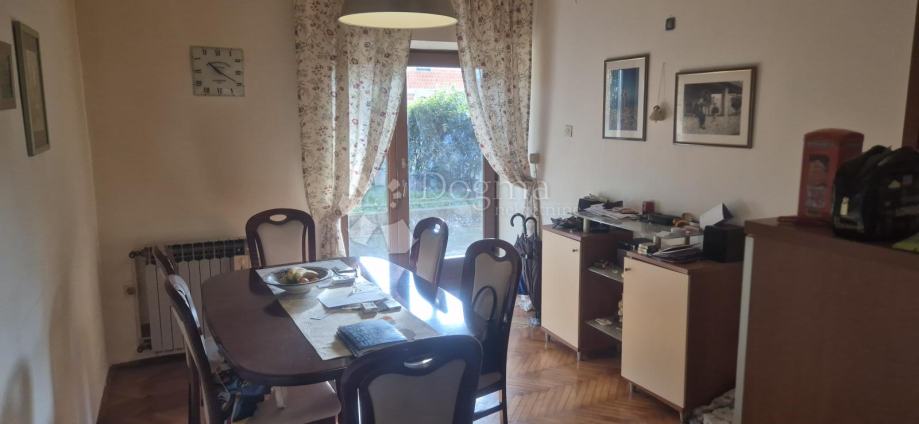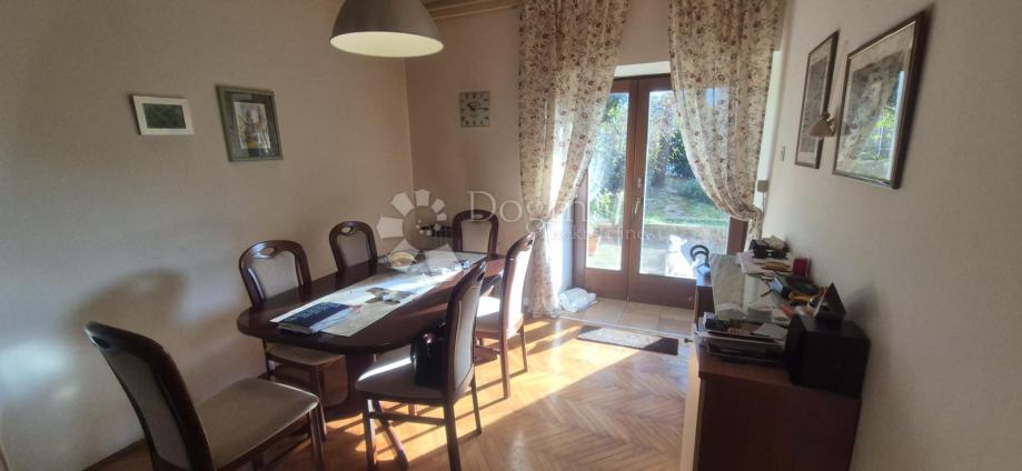 Osobito zadovoljstvo je imati u ponudi ovaj lijepi stan na odličnoj lokaciji. Kad spomenemo Trsat podrazumijeva se da je lokacija tražena, ali ova nekretnina nalazi se na izvanrednoj poziciji na Trsatu, vrlo blizu ulaza u Trsatski park u mirnom i atraktivnom okruženju. Kuća u kojoj je etaža, smještena je na parceli od 630 m2 i sastoji se od dva stana - etaže do kojih se dolazi iz dvorišta koje je širokim ulazom povezano na mirnu prometnicu gdje prolazi vrlo malo automiobila, isključivo lokalnog karaktera. U stambeni prostor ulazi se sa zelene okućnice koja je u vlasništvu ovog stana i koju samo on koristi. Etaža ima vrlo lijep i funkcionala raspored, sve prostorije su vrlo prostrane tako da je osjećaj kretanja izvanredan i pruža iznimno zadovoljstvo dok prelzite iz jedne u drugu prostoriju. Dnevni boravak i dvije sobe pozicionirani su prema jugu i moru, dakle imaju puno svijetla. Kuhinja i blagovaonica su jedna prostorija i odmah su do ali odvojeni od dnevnog boravka. Stan odiše iznimnom toplinom, useljiv je bez dodatnog ulaganja obzirom da je sve kvalitetno uređeno, uredno i čisto. Ispred stana se nalazi terasa na koju se nastavlja uređena zelena okućnica. Uz samu etažu smještena je garaža od 25 m2 u koju se ulazi direktno oz dvorišta. Lijepa nekretnina za koju se doslovno može primijeniti pravilo tri glavna kriterija o kojima treba voditi računa kod kupnje nekretnine: lokacija, lokacija i lokacija! Stan se može urediti još na tisuće načina ali ova lokacija je neponovljiva i jedinstvena. Toplo preporučam.
