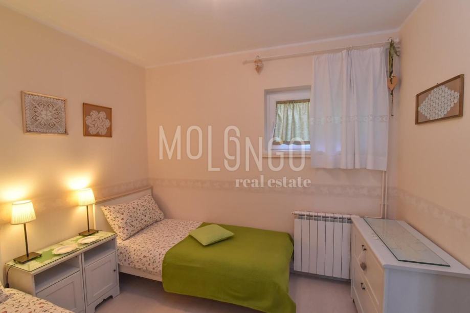 Prekrasan stan za najam u kući na Trsatu koja se nalazi u mirnoj i tihoj ulici. Kuća ima tri stana, a ovaj se nalazi u prizemlju. Vrlo lijepo sređen i adaptiran stan ima dvije odvojene sobe, kupaonu, saunu, a kuhinja i dnevni su u open space konceptu. Kuća ima novu fasadu, a ovome stanu pripadaju dva parkirna mjesta na ograđenoj okućnici, te također ljetna kuhinja sa roštiljem.