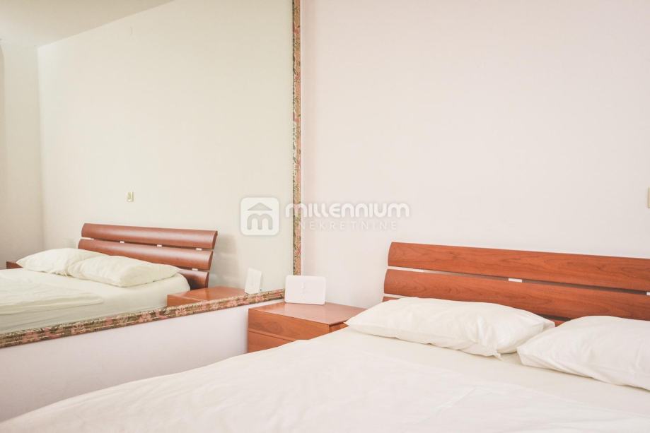Kuća ima tri etaže, u prizemlju se nalazi stan od 100m2 s velikim dnevnim boravkom s kuhinjom, toaletom, terasom i hodnikom.