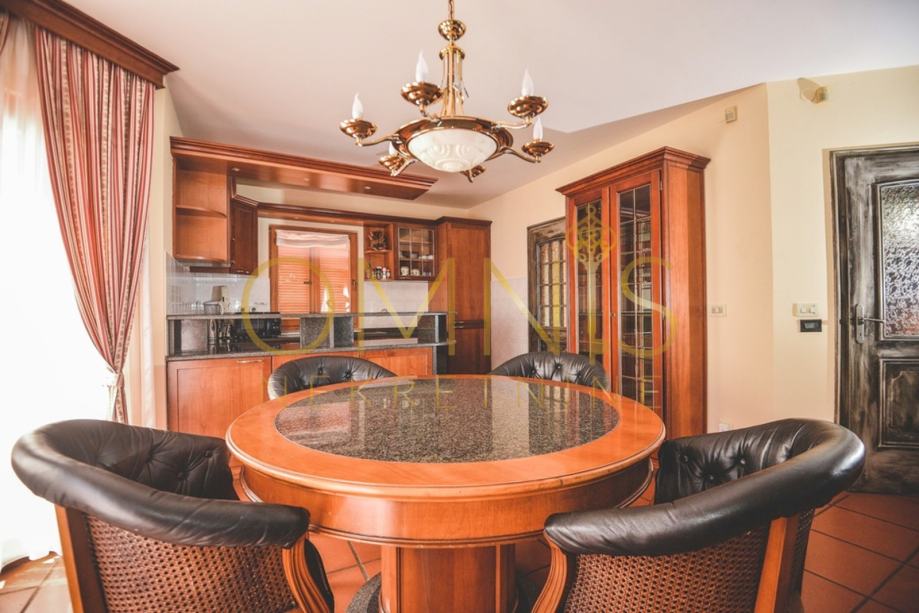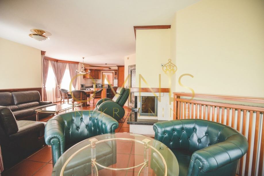 Kuća se sastoji od velikog dnevnog boravka s kuhinjom, toaleta, hodnika, terase s izlazom na travnjak i garaže za dva parkirna mjesta u prizemlju. Druga i treća etaža povezane su s prizemljem elegantnim stubištem od punog drva. Na drugoj etaži nalaze se prostrani dnevni boravak s kuhinjom, toalet, hodnik i terasa. Treća etaža sastoji se od tri udobne spavaće sobe i luksuzne kupaonice. Dvije sobe imaju izlaz na balkon, dok treća soba ima izlaz na loggiu.