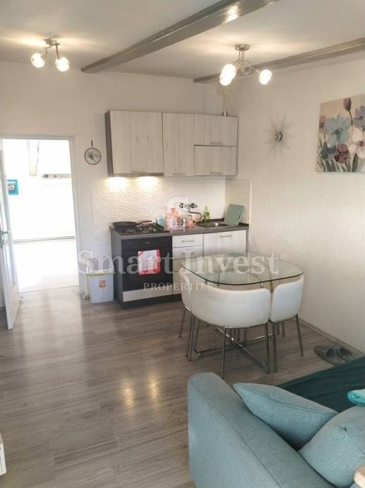 Stan površine 43 m2 smješten je na prvom katu uredne kuće smještene na mirnoj lokaciji te se sastoji od ulazne terase, kuhinje sa blagovaonicom i boravkom, prostrane spavaće sobe i kupaonice.