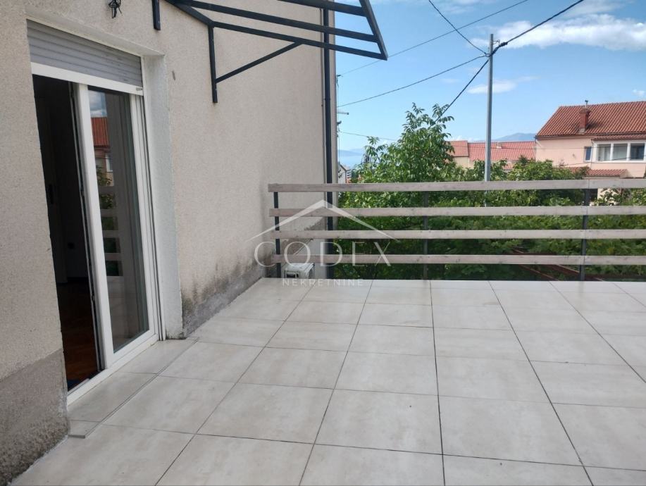 U ponudi je moderan i funkcionalan trosobni stan s dnevnim boravkom, smješten na prvom katu uredne zgrade na južnoj orijentaciji, što osigurava obilje prirodnog svjetla tijekom cijelog dana. Stan se sastoji od ulaznog hodnika, kupaonice, spremišta, prostranog dnevnog boravka povezanog s kuhinjom, tri udobne sobe te lođe, a dodatnu vrijednost pružaju veranda, velika terasa idealna za boravak na otvorenom te vanjsko stubište.