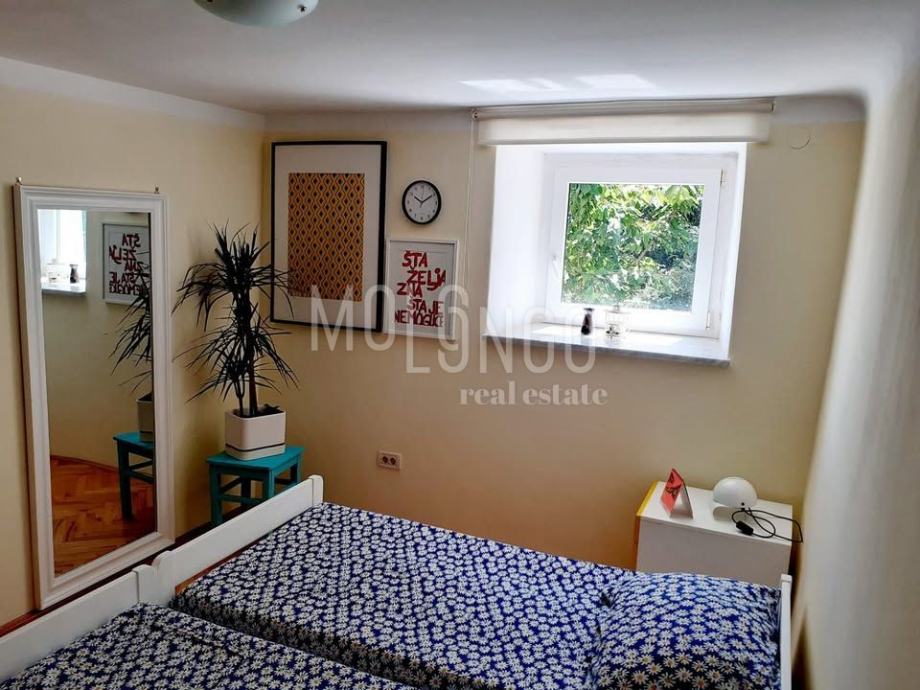 Iznajmljuje se uredan i potpuno opremljen stan u prizemlju kuće na Trsatu, smješten u mirnom okruženju nedaleko od crkve i svih važnih sadržaja.