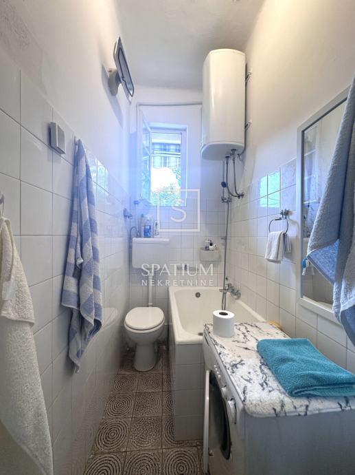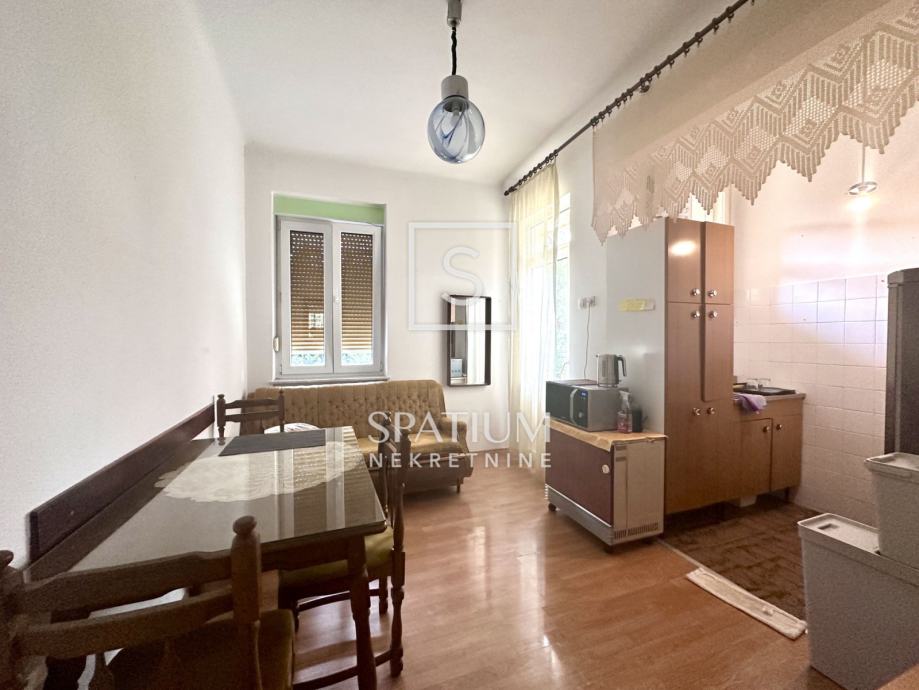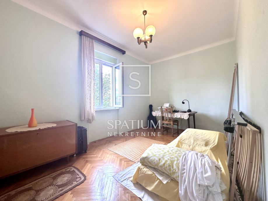 VOJAK, u ponudi imamo dvosobni klasični stan površine 56,28 m2 na traženoj lokaciji. Postavljena je nova PVC stolarija, a ostatak interijera je u prvobitnom, no vrlo održavanom stanju te je stan potpuno useljiv. Na podovima su terrazzo pločice, dok su sobe opremljene hrastovim parketom. Kuhinja i blagovaonica, južno orijentirane, imaju izlaz na balkon od 3 m2 s pogledom na zelenilo, dok su spavaće sobe okrenute prema sjeveru. Zgrada je uredna, a parkiralište je dostupno ispred zgrade.