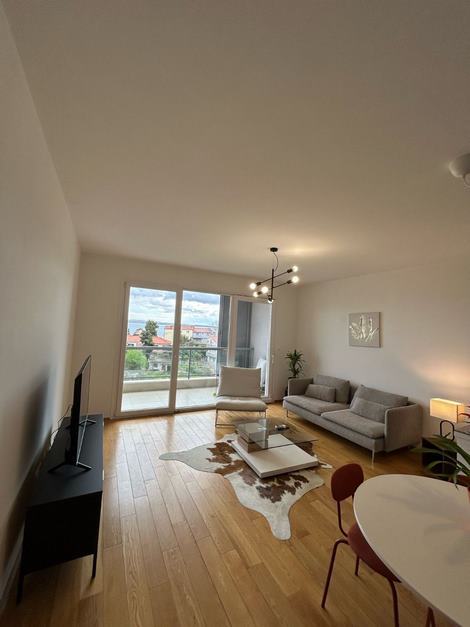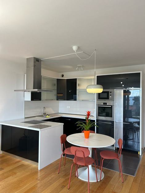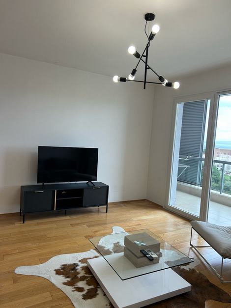 Iznajmljujemo lijep dvosoban stan smješten na šestom katu novogradnje na Trsteniku. Stambena površina stana iznosi 75 m2, a sastoji se od kuhinje s blagovaonicom i dnevnim boravkom, dvije spavaće sobe, kupatila, toaleta i lođe na jugu.