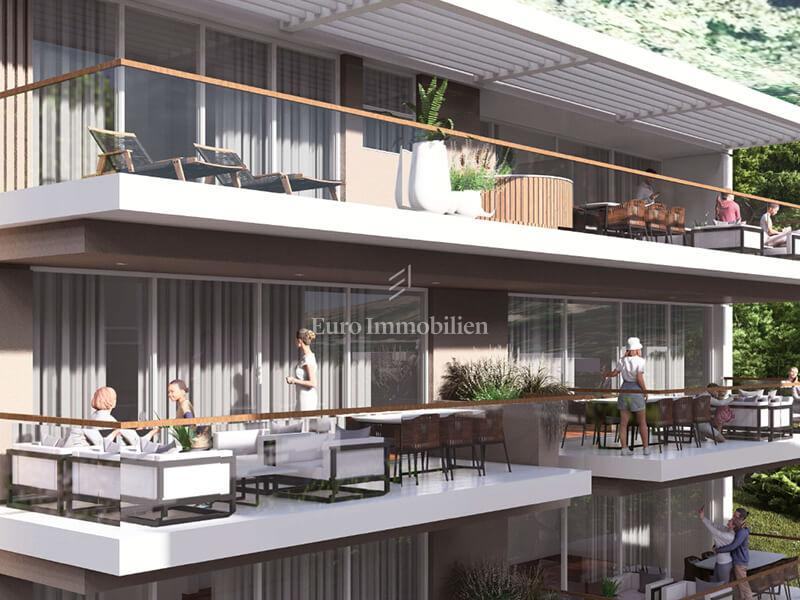 U ponudi je atraktivan projekt novogradnje u Tučepima, smješten svega 130 metara od mora i prekrasnih plaža. Projekt obuhvaća dvije urbane vile s liftom i ukupno 12 stanova. Svaka vila sastoji se od podruma s garažnim mjestima (prodaja po cijeni od 20.000 €), prizemlja i tri kata.