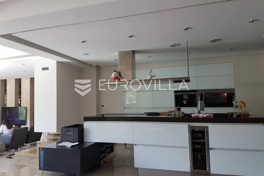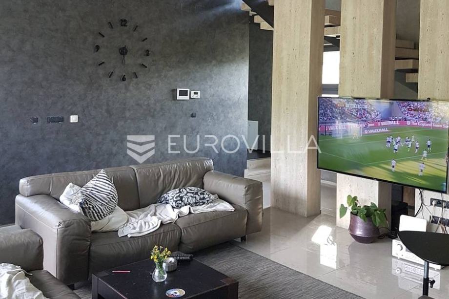 U podrumu se nalazi garaža, dva sanitarna čvora, te ogroman poslovni prostor. U prizemlju su smješteni kuhinja, blagovaonica, prostrani dnevni boravak, radna soba, spavaća soba s garderobom, kupaonica, zimski vrt, ured, atelier, izložbeni prostor te tri terase i prostrani trijem, dok se na katu nalaze četiri spavaće sobe, dvije kupaonice, balkon/dječja igraonica te dvije terase.