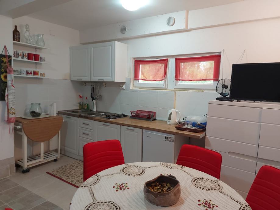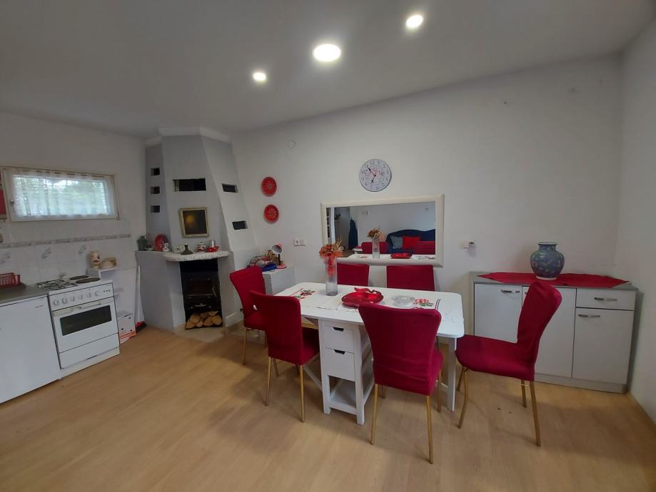 Kuća sa 2 odvojena stana, kompletno namještena. Uz kuću 2 drevene kleti. Novo krovište, fasada i instalacije. Terasa s roštiljem.