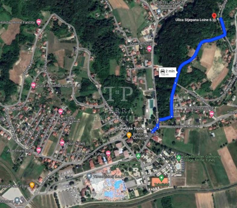 Prodajemo drvenu prizemnicu, odnosno staru zagorsku hižu (cca 40 m²) i drveni pomoćni objekt na zemljištu od 2.288 m² u Tuheljskim Toplicama, na adresi Stjepana Loine br. 5. Oba objekta posjeduju uvjerenje da su sagrađena prije 1968. Nalaze se uz asfaltnu cestu i posjeduju priključak struje, vode i telefona. Objekti su za potpuno renoviranje ili ponovnu izgradnju. Sjevernim i zapadnim rubom čestice služe se za prolaz vlasnici parcela dok im se ne osigura drugi pristup (neupisana služnost prolaza). Nekretnina se nalazi na nekoliko minuta od novih bazena i hotela u Tuheljskim Toplicama i ima potencijala za vikendicu ili turizam. Vlasništvo je čisto.