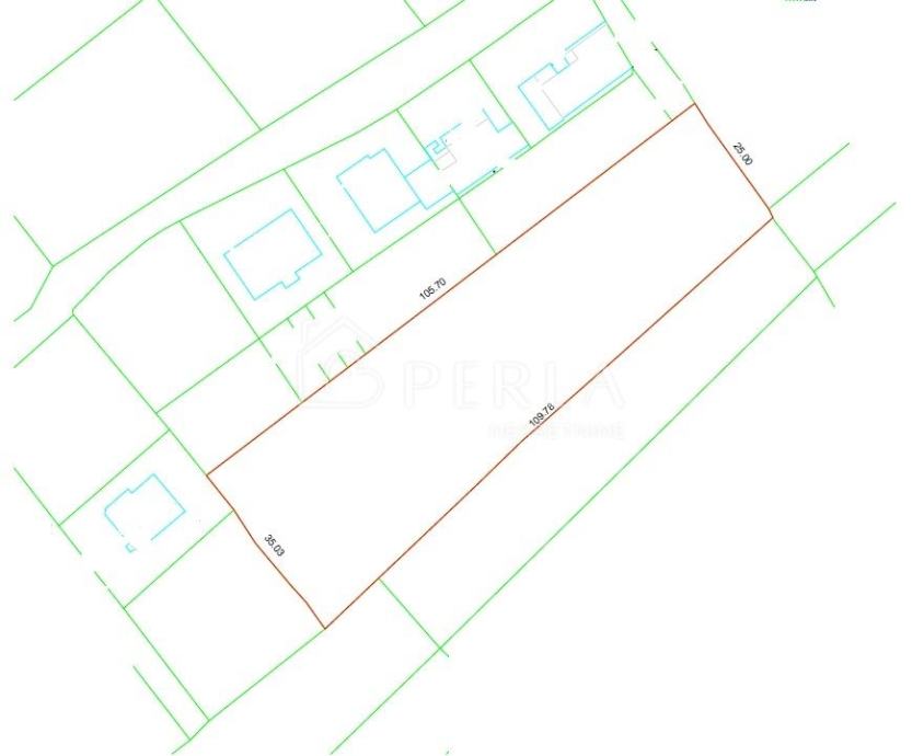 Dimenzija zemljišta je cca 105x35m.