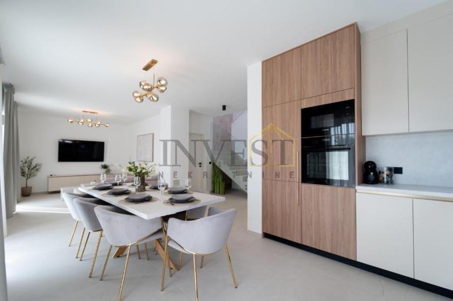 Vila ukupne površine 166 m² smještena je na uređenoj parceli od 544 m², južne orijentacije. U prizemlju se nalazi prostrani dnevni boravak s kuhinjom i blagovaonicom, jedna spavaća soba te gostinjski toalet. Na katu su smještene tri komforne spavaće sobe, svaka s vlastitom kupaonicom, a iz glavne spavaće sobe izlazi se na veliki balkon s pogledom.