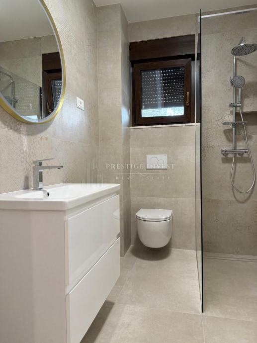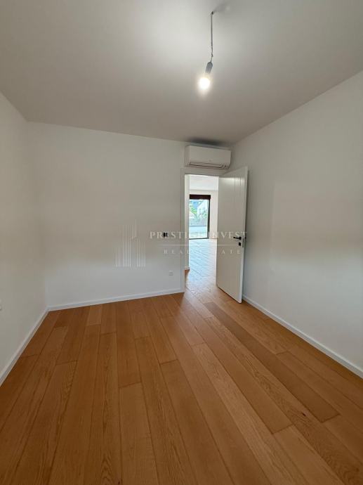 Stan se nalazi u prizemlju zgrade, te ima prostrani vrt od 110 m2, idealno za ljubitelje vrtlarstva i uživanje na otvorenom. Soba je svijetla i prostrana, dok je kupaonica moderno opremljena. Kuhinja, blagovaonica i dnevni boravak čine otvoreni prostor, idealan za uživanje u svakodnevnim aktivnostima. Udaljenost od plaže svega 200 m, 5 minuta hoda Zgrada je smještena u blizini trgovina, restorana i svih važnih sadržaja Pogodno za turistički najam ili cjelogodišnje stanovanje.
