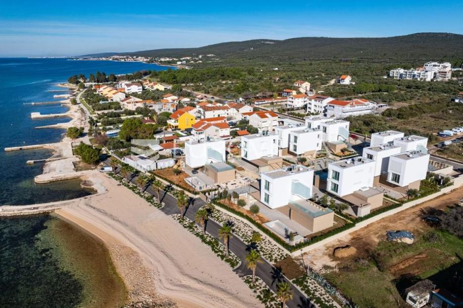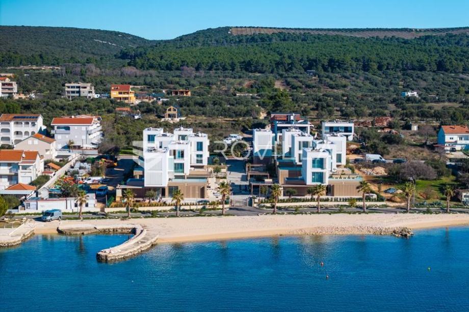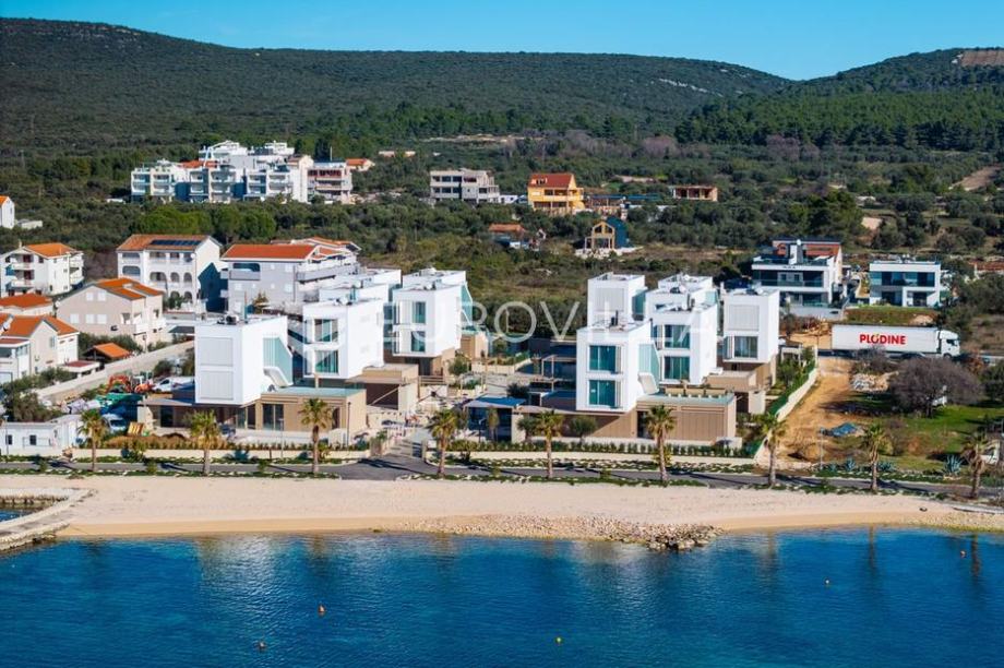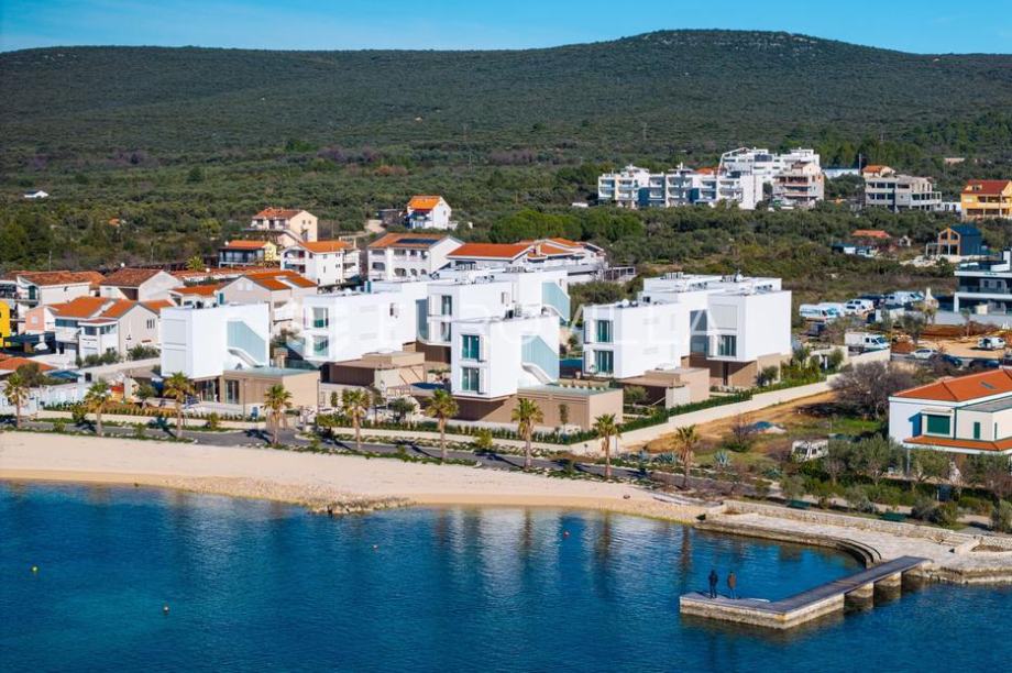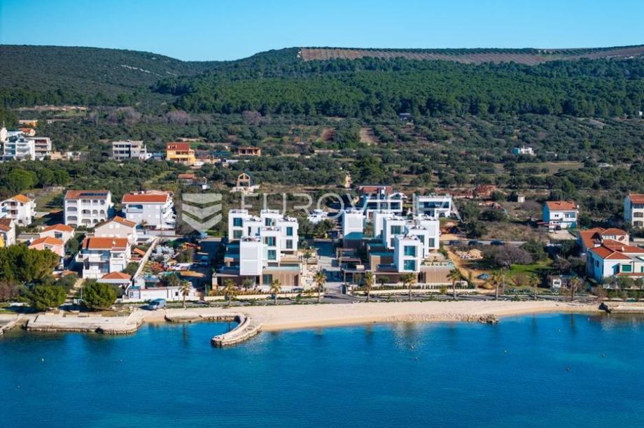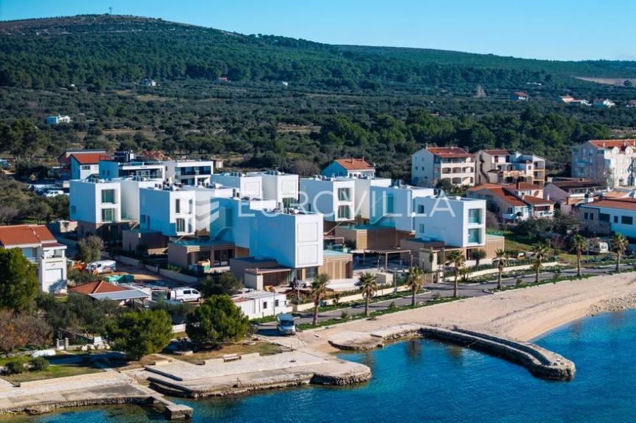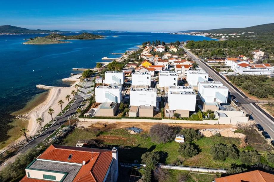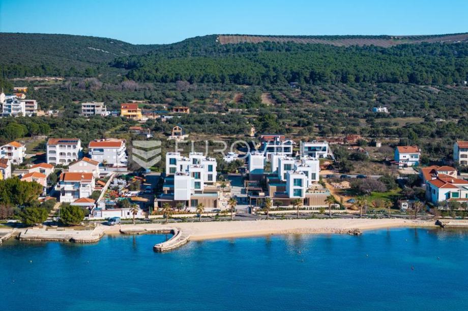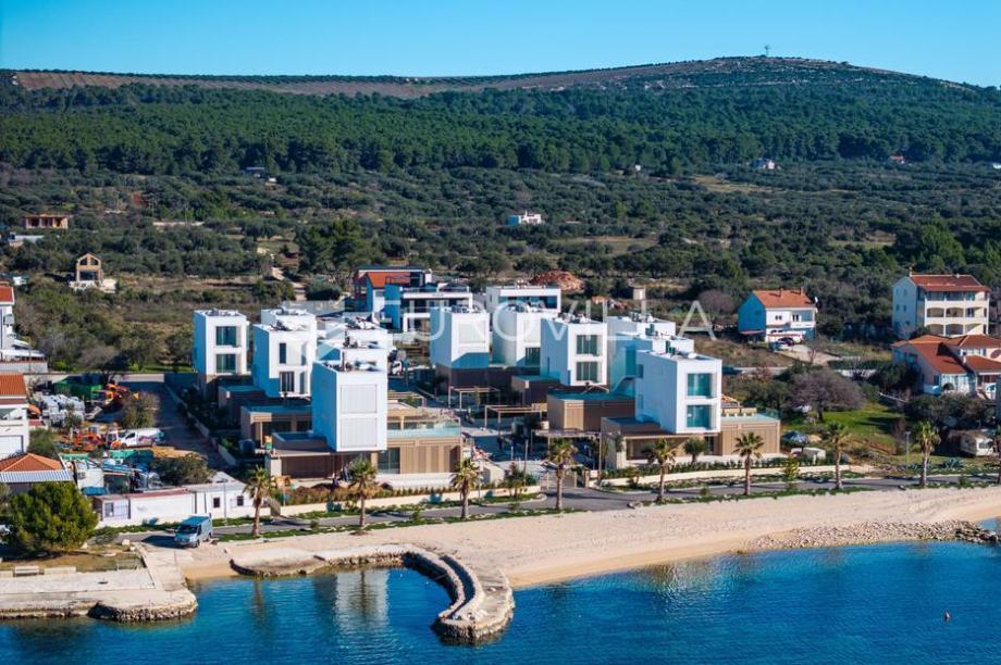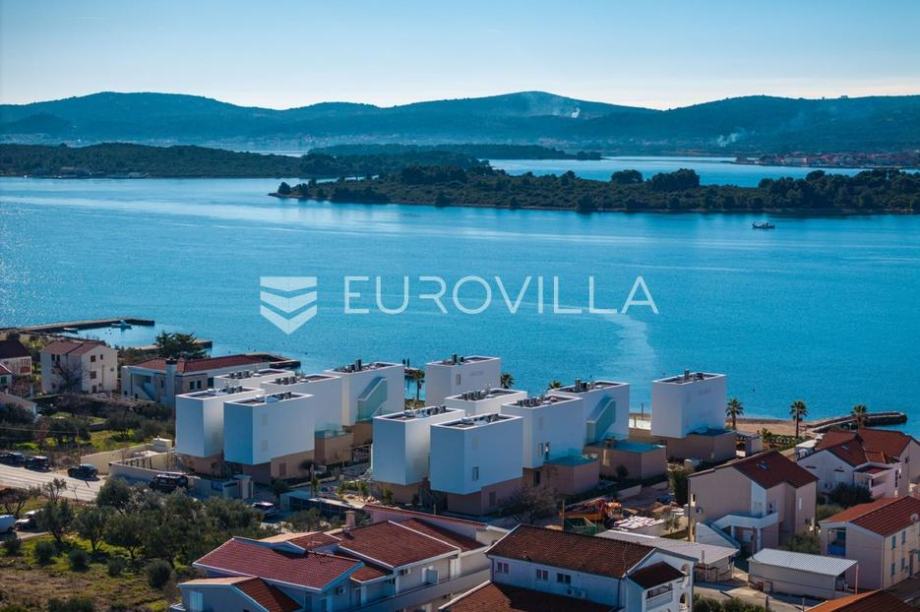 Turanj, prekrasni stambeni kompleks koji se sastoji od 8 objekata gradila je poznata firma VMD.Dvojna kuća u trećem redu od mora, razvedena u 4 etaže.Podrum 41,28m2: strojarstvo, toalet, boravak s kuhinjom i blagovaonicom.Prizemlje 41,93m2: ulaz, toalet, boravak s kuhinjom i blagovaonicom....