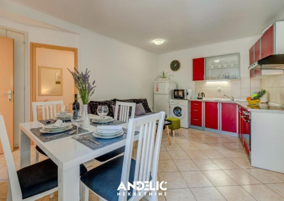 U prizemlju kuće nalazi se apartman koji se sastoji od kuhinje s blagovaonicom, spavaće sobe, kupaonice i hodnika.