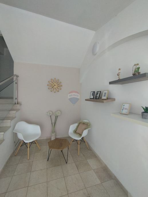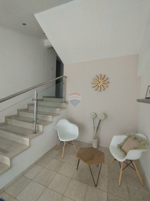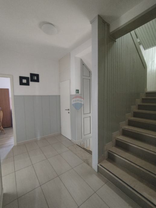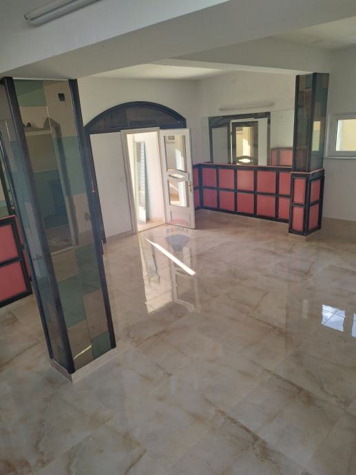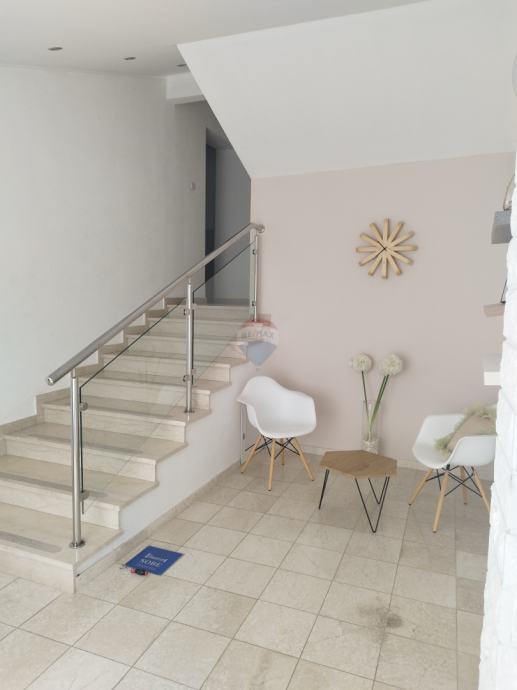 Objekt se sastoji od podruma, spremišta, prizemlja, 1. kata i 2. kata. U prizemlju se nalaze 3 sobe, 1 odvojen stan, lokal s čajnom kuhinjom, ulaznim holom, muškim i ženskim WC-om, te skladište i podrum. Lokal ima izlaze s obje strane objekta stoga je moguće ući s prednje i stražnje strane objekta gdje se nalaze parkirna mjesta. Ispred objekta je 15+ parkirnih mjesta te sa stražnje strane 7 parkirnih mjesta. Glavni ulaz u objekt jest s glavne prometnice koja ulazi na veliko parkiralište dok je stražnja strana objekta ulaz sa sporedne ulice.