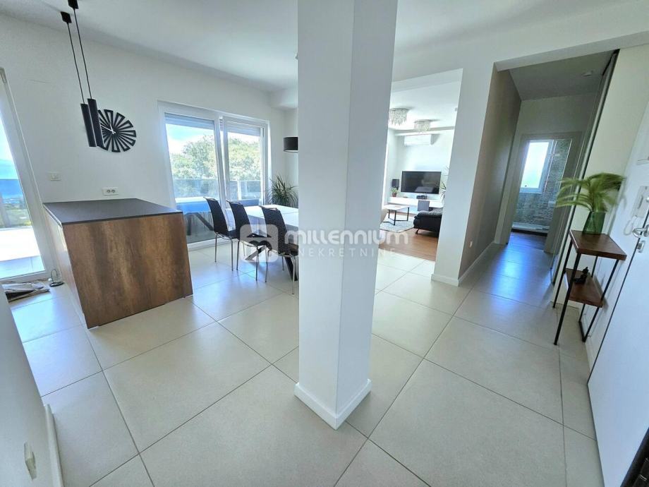 Unutrašnjost je uređena pažljivo i s ukusom, a stan se prodaje u potpunosti namješten, što budućim vlasnicima omogućuje useljenje bez dodatnih ulaganja. Grijanje je etažno na gradski plin, pri čemu je u dnevnom dijelu postavljeno podno grijanje, dok su spavaće sobe opremljene radijatorima. Ugodnu temperaturu tijekom cijele godine osigurava i klima uređaj. Ugrađeni su PVC stolarija, protuprovalna vrata te video nadzor, što doprinosi sigurnosti i energetskoj učinkovitosti.